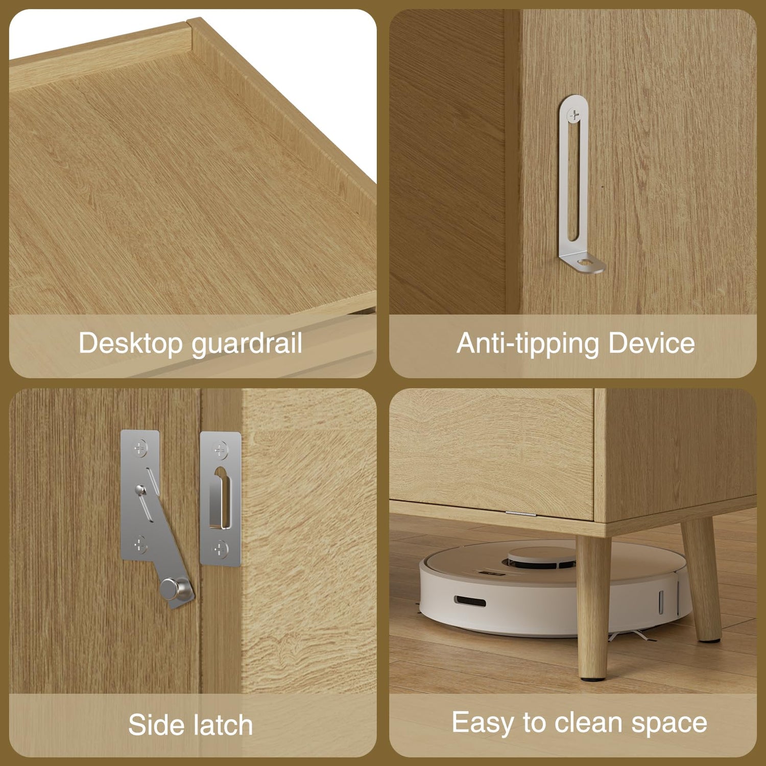 - Thoughtful Materials and Durability:Made from high-quality MDF and designed with solid wood legs for exceptional stability, it is resistant to seasonal wood movement, making it an excellent choice for a durable piece of furniture! The front flip door features two premium gas rods for easy opening and cleaning of the litter box. Additionally, it comes with a safety latch to prevent the door from accidentally opening.