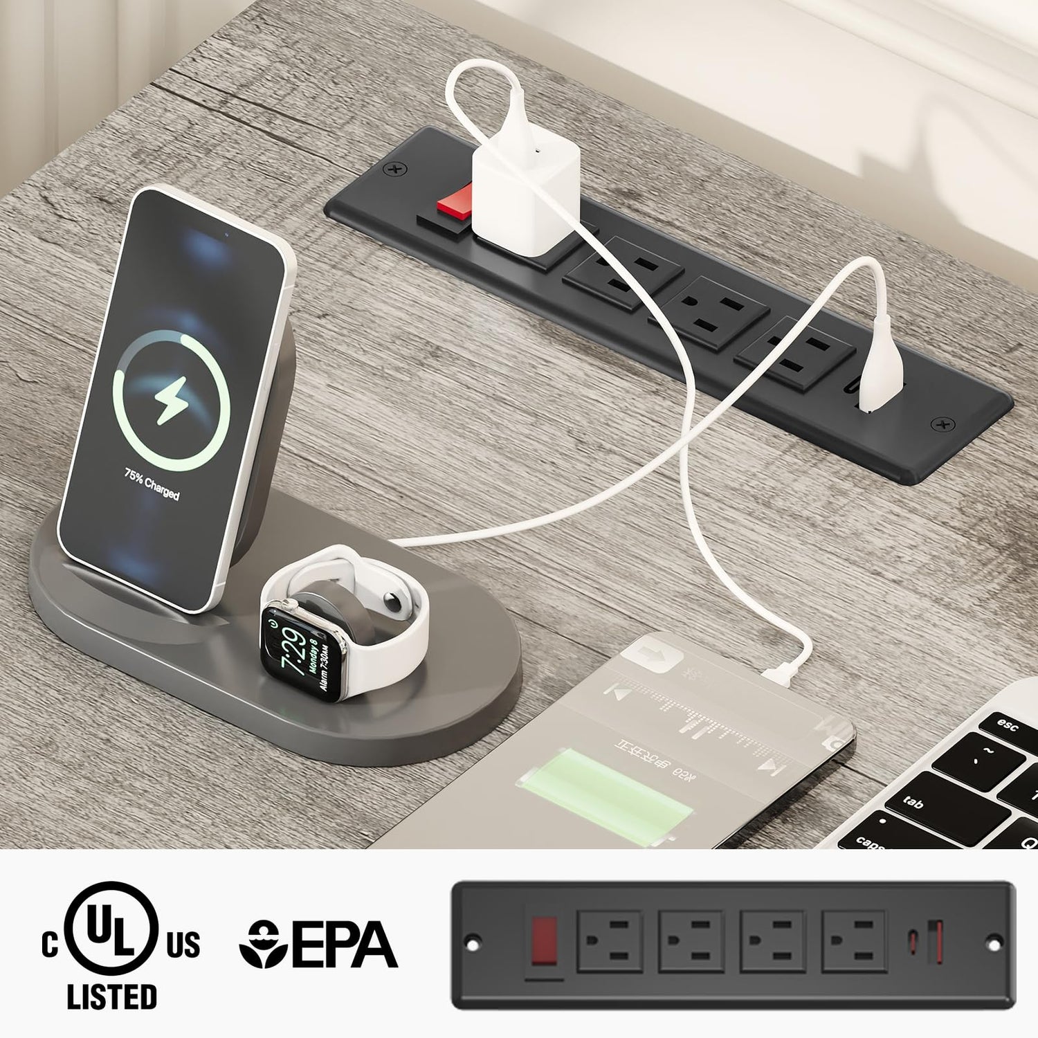 - 【Convenient Charging Station】Our charging hub features 4 outlets and 2 USB ports, allowing simultaneous power supply for up to 6 devices. It includes an on-off switch for safe electricity usage and convenient one-button power-off functionality, enhancing security. The power outlets accommodate charging for a variety of devices such as cell phones, tablets, and laptops.