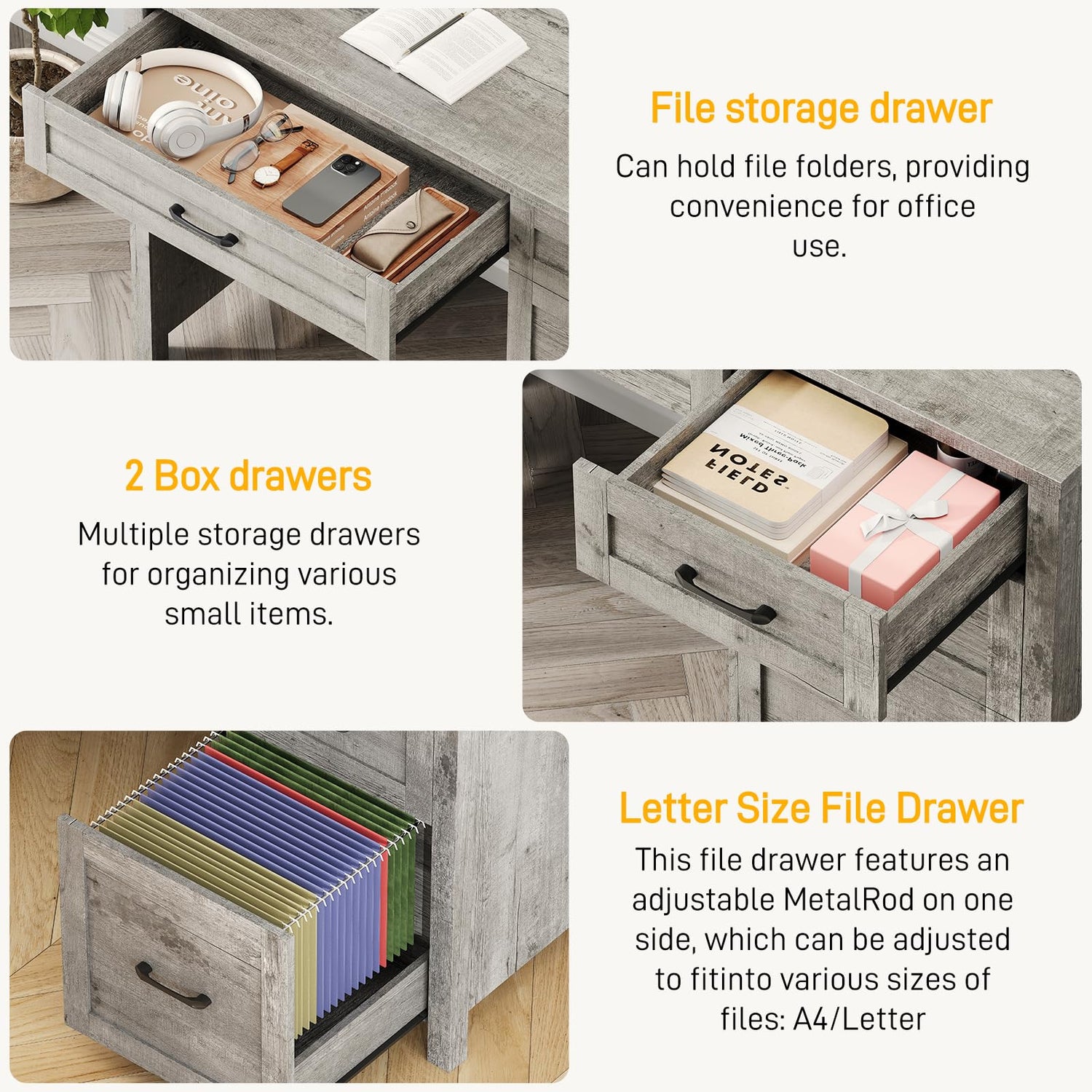 Halitaa Farmhouse 47" Executive Desk, Computer Desk with File Drawer and Charging Station, Workstation for Home Office, Study.Grey