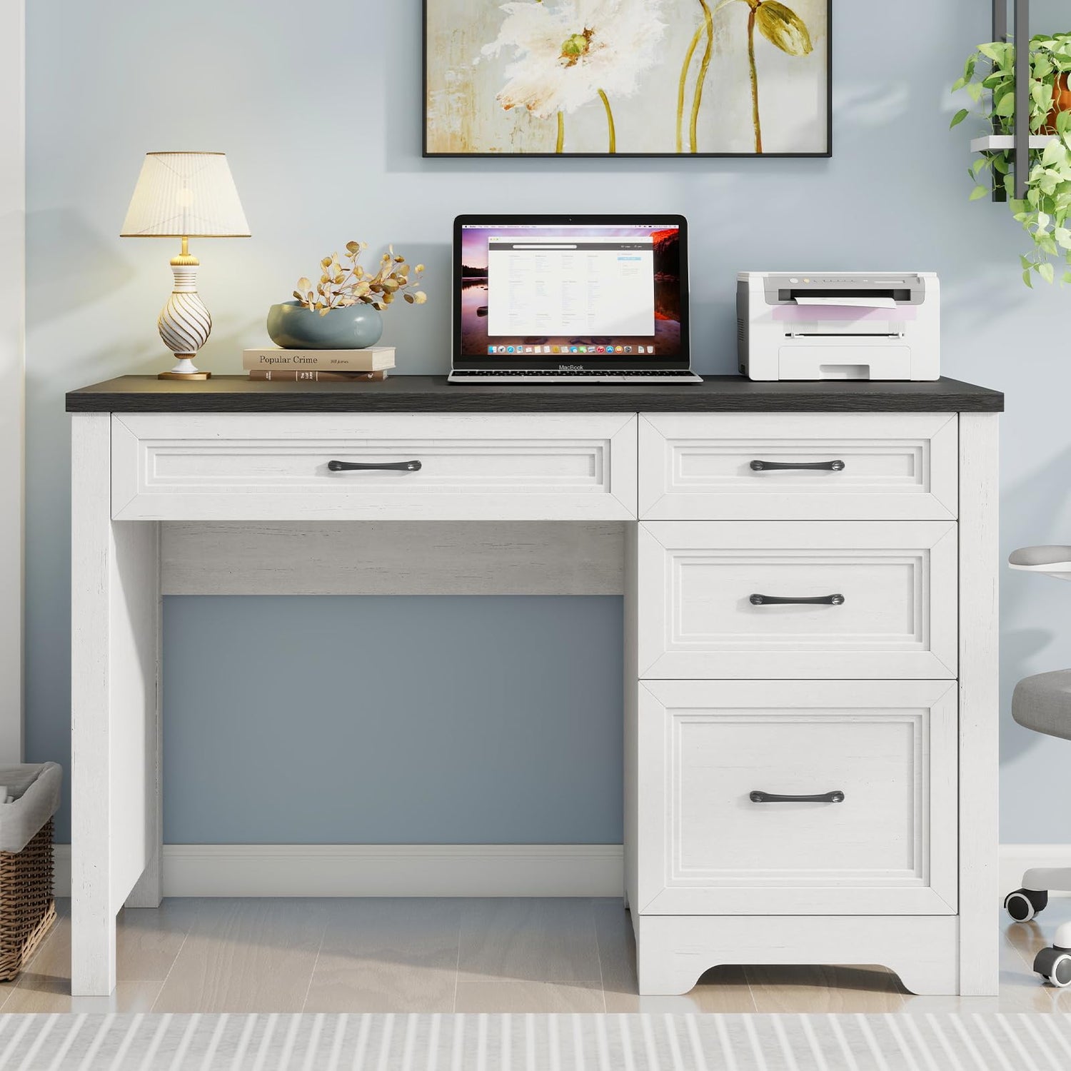 Halitaa Farmhouse Executive Desk with Drawers, Wood Computer Desk with Ample File Drawer, Rustic Home Office Desk with Storage for Bedroom, Living Room, Black
