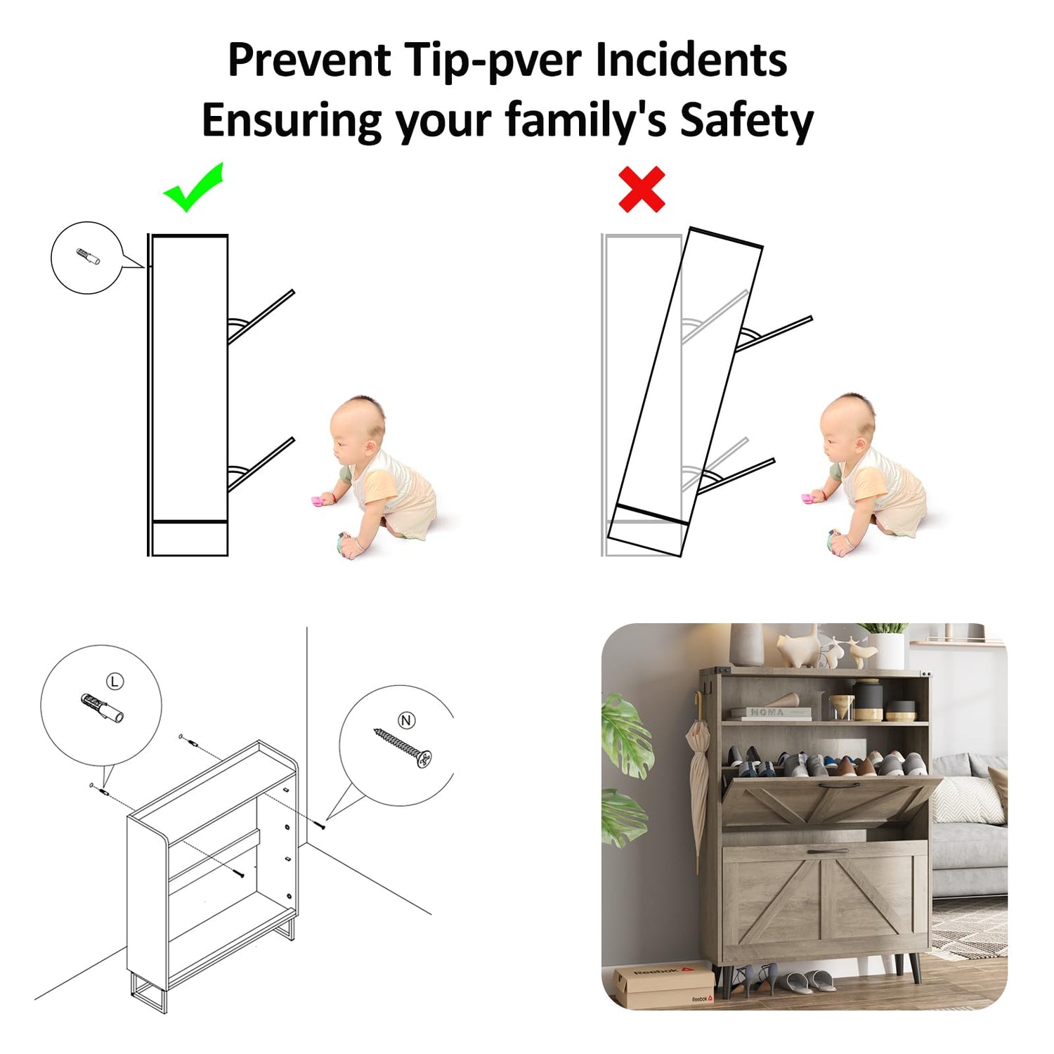 - 【High Quality & Sturdy Construction】This slim shoe cabinet is a safe purchase when it comes to quality. Anti-tipping kits improve the stability. You don't worry about it falling by accident.Made of high-quality MDF wood,and black metal handle is simple and elegant,prevents scratches and injuries during use. Overall, it will get the shoe storaging job done and look good doing it. It's a perfect size shoe cabinet for every home space.