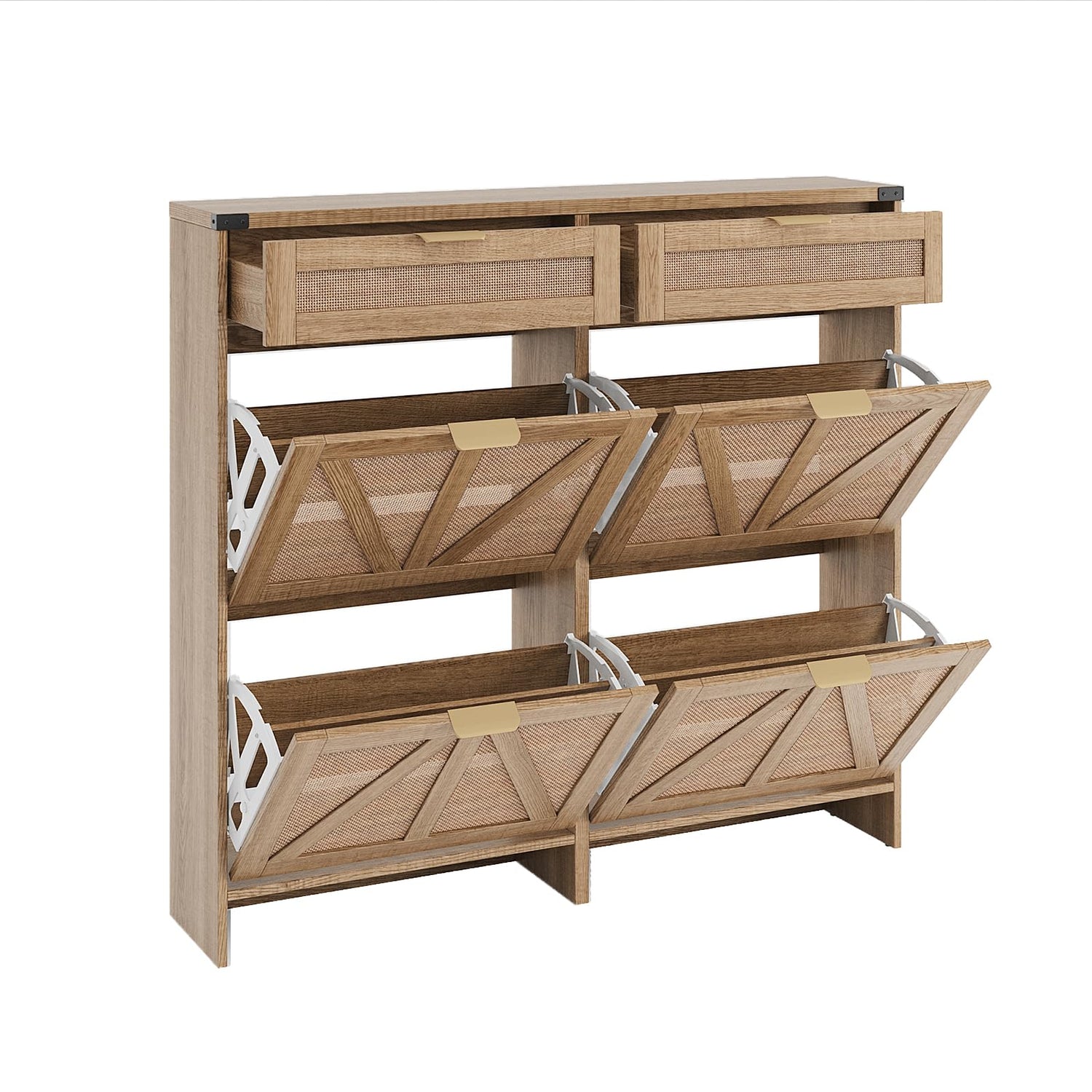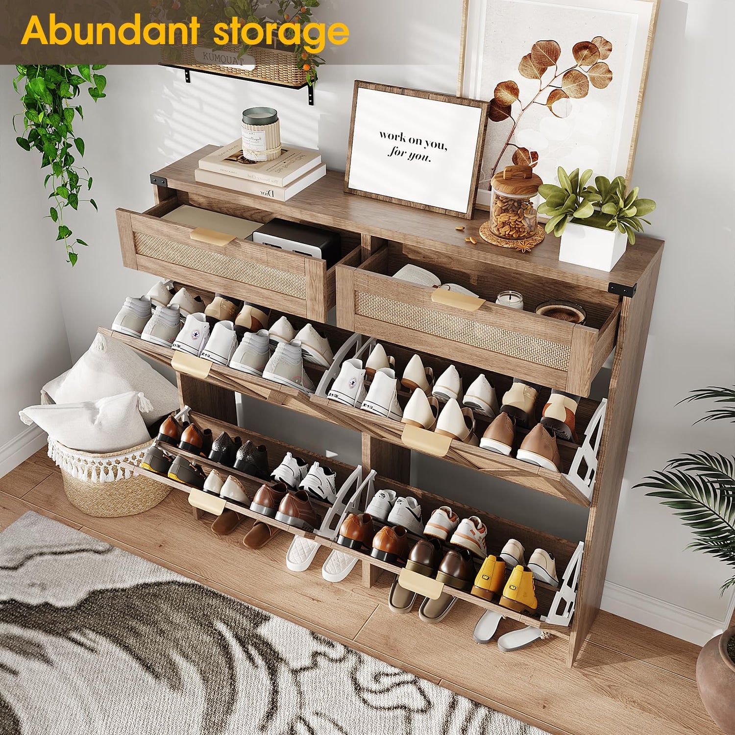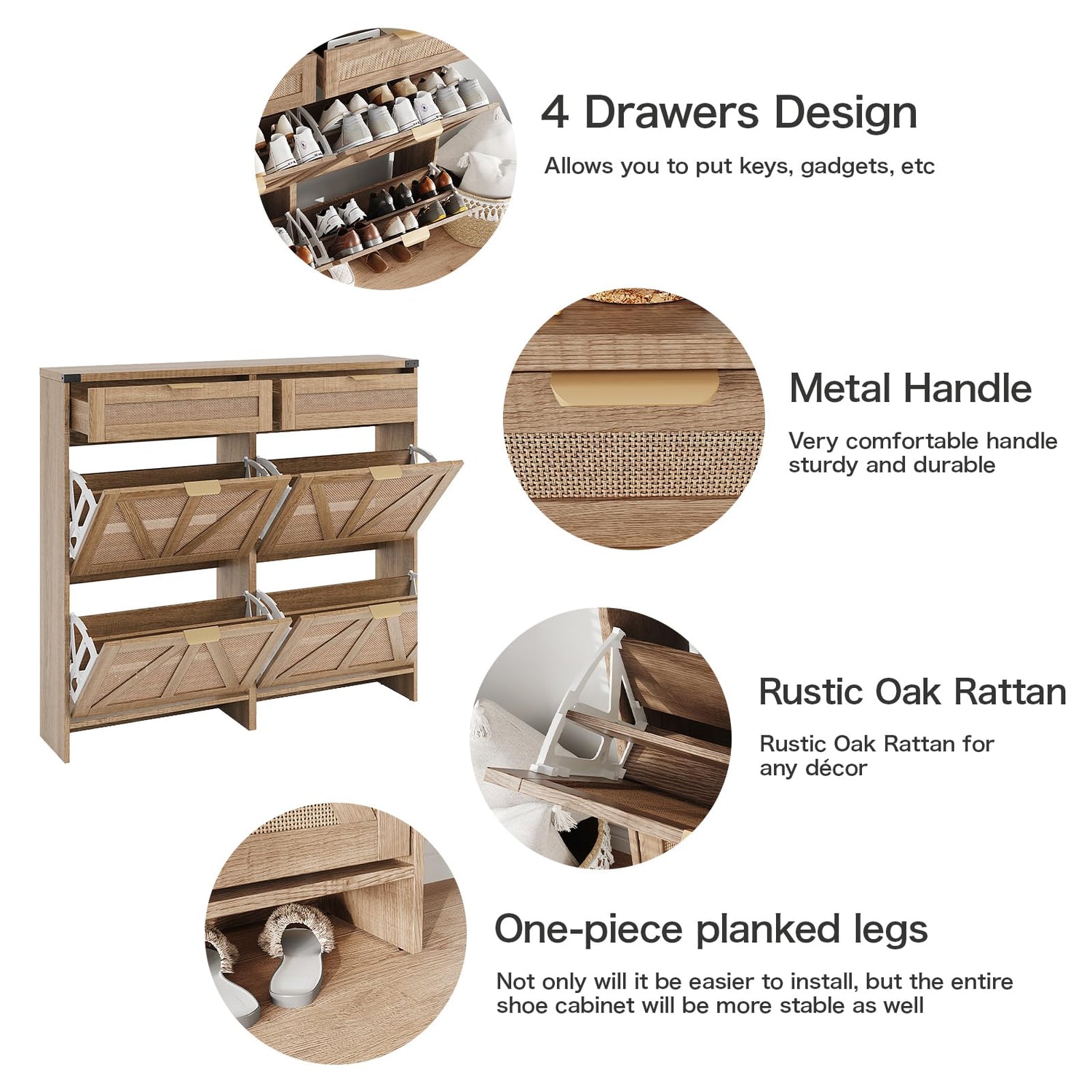 Halitaa Shoe Cabinet with 4 Flip Drawers & 2 Drawers,Farmhouse Shoe Storage Cabinet for Entryway,Slim Freestanding Organizer Rack for Front Door Entrance,Rustic Oak Rattan