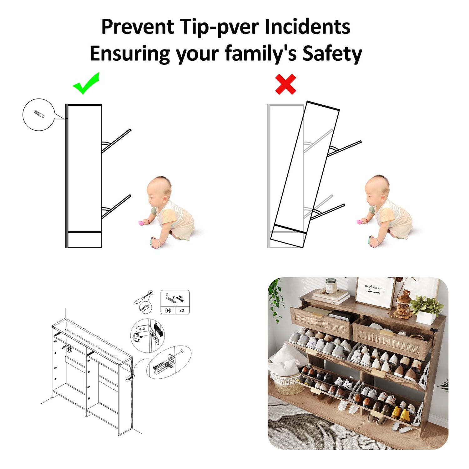 - 4 Flip Drawers&2 Drawers Shoe Cabinet:This shoe cabinet has 6 Drawers in total,2 of the drawers are for daily items.For 2 flip drawers and 2 tiers inside for each drawer, It features a removable divider in each compartment,you can choose to keep or remove the panel according to the size or style of your shoes.