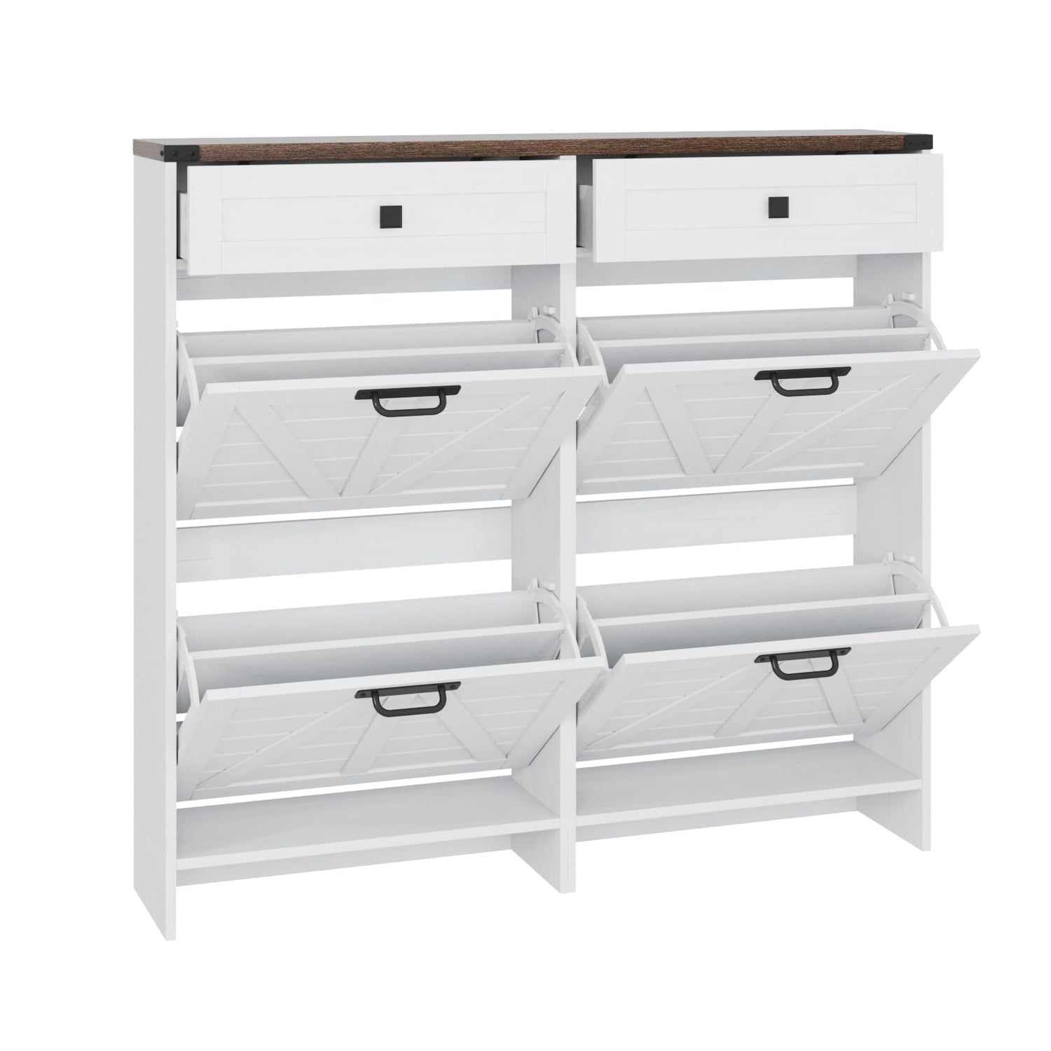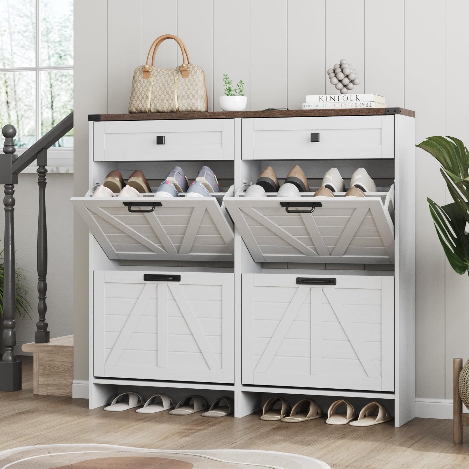 Halitaa Shoe Storage Cabinet with 4 Flip Drawers & 2 Drawers,Shoe Cabinet Storage with Legs for Entryway,Freestanding Shoes Organizer Cabinet,Farmhouse Shoe Rack Cabinet,White