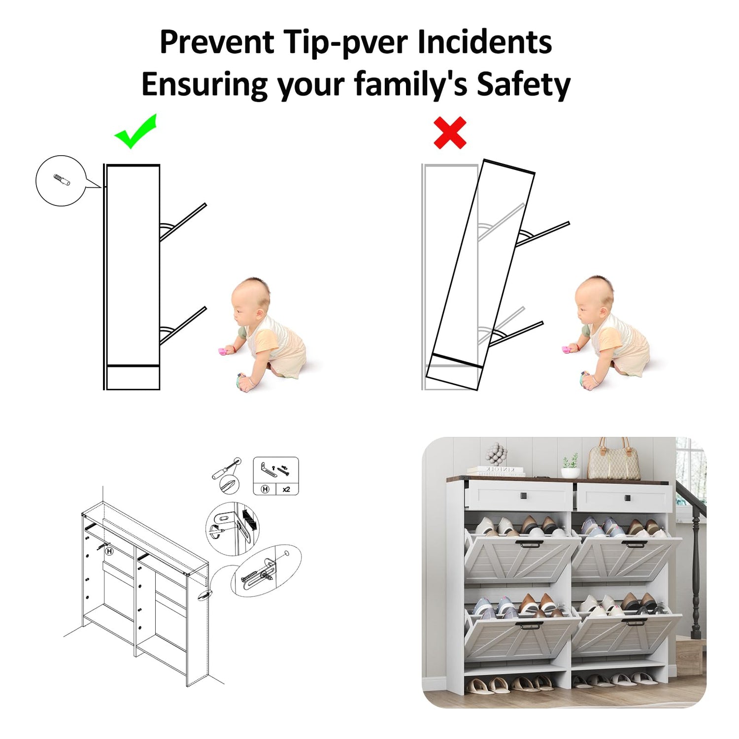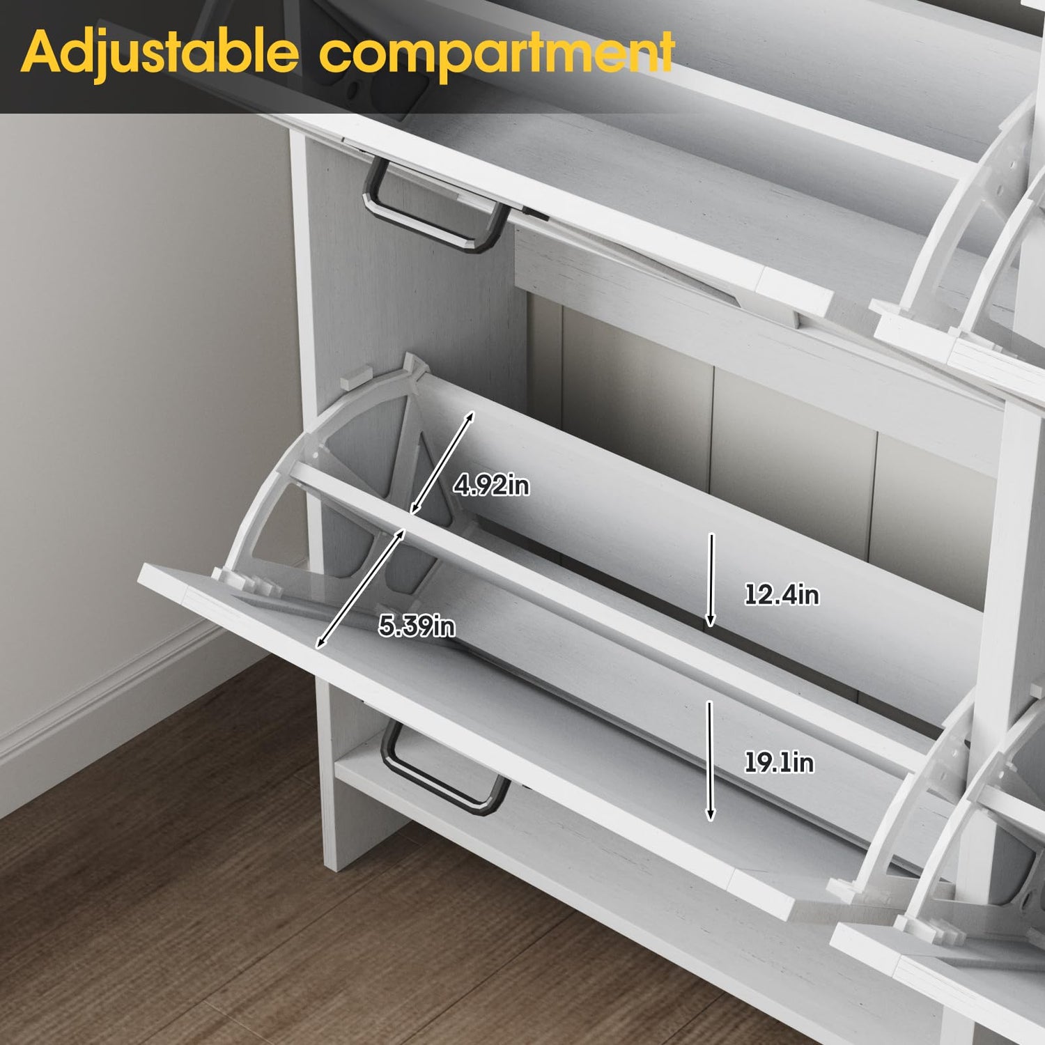 - 4 Flip Drawers&2 Drawers Shoe Cabinet:This shoe cabinet has 6 Drawers in total,2 of the drawers are for daily items.For 2 flip drawers and 2 tiers inside for each drawer, It features a removable divider in each compartment,you can choose to keep or remove the panel according to the size or style of your shoes.