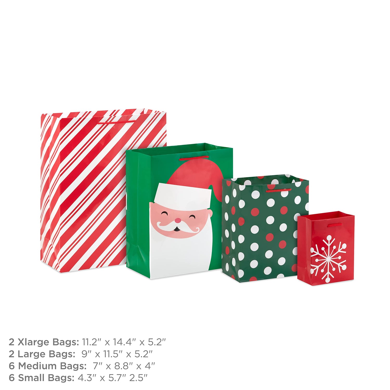 Hallmark Image Arts Assorted Holiday Gift Bag Bundle (16 Bags: 6 Small 5", 6 Medium 8", 2 Large 11", 2 XL 14") Red and Green, Santa, Stripes, Polka Dots, Snowmen, Snowflakes