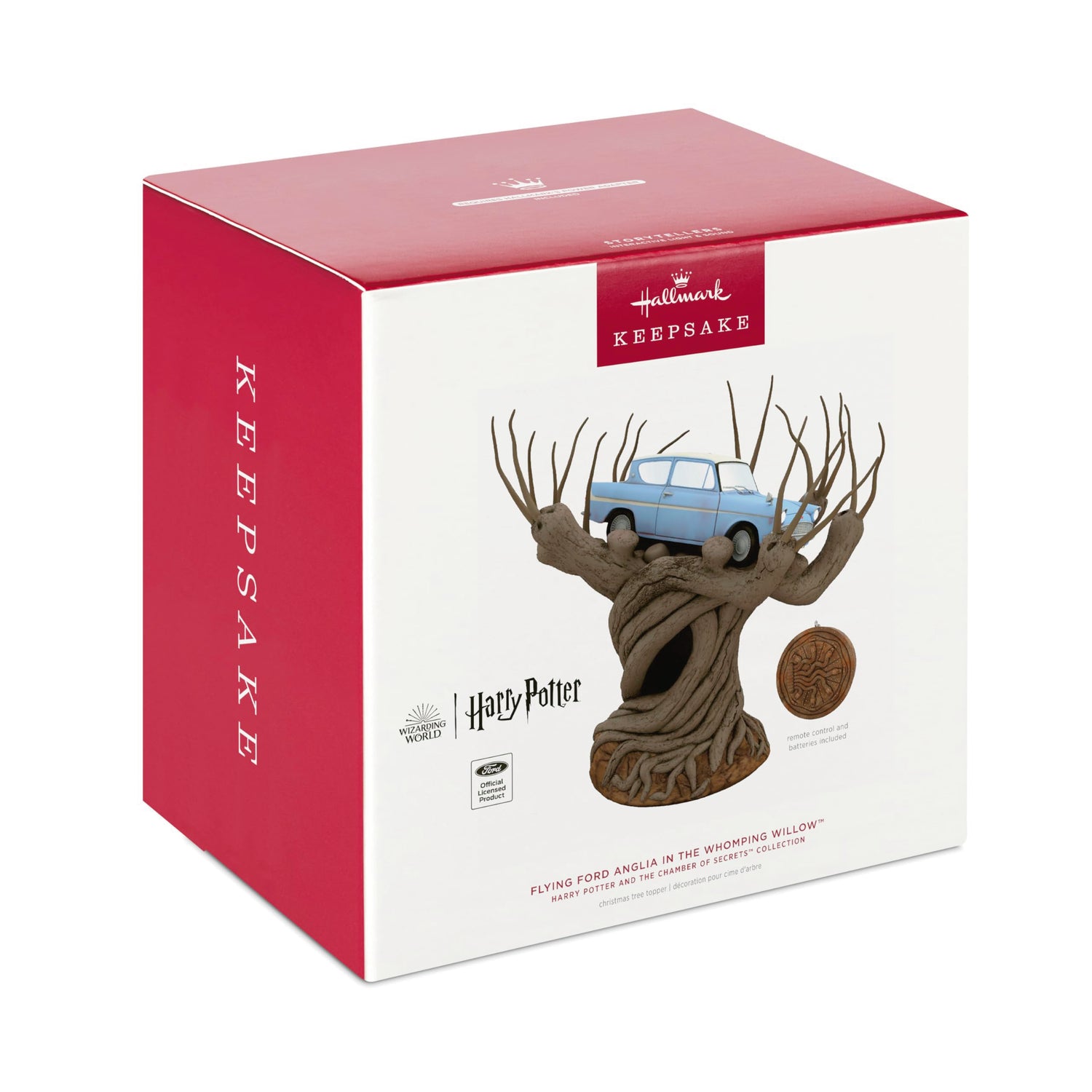 - Dare to return to the Chamber of Secrets with the light and sound show of the Flying Ford Anglia in the Whomping Willow Christmas tree topper. Interacts with the Harry Potter and the Chamber of Secrets Collection Hallmark Keepsake Storytellers Christmas ornaments. Power adapter included.