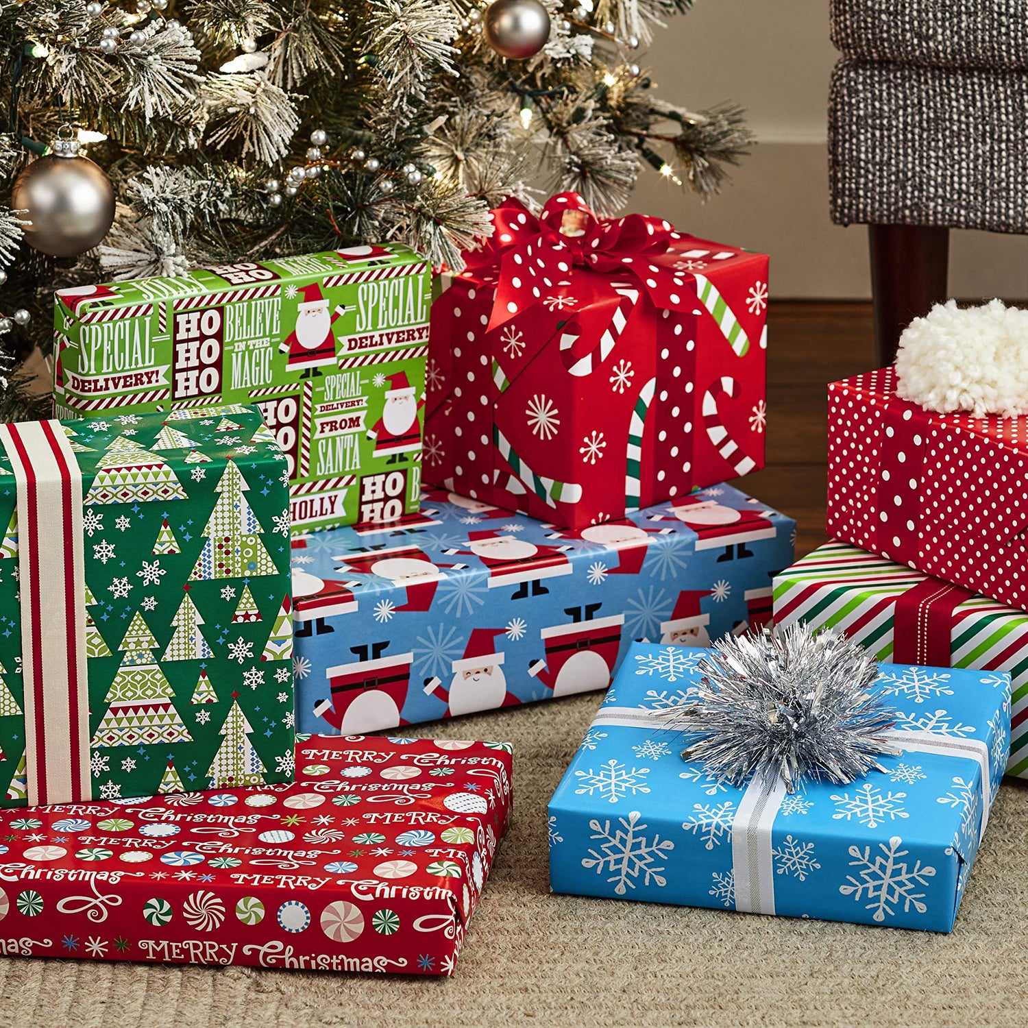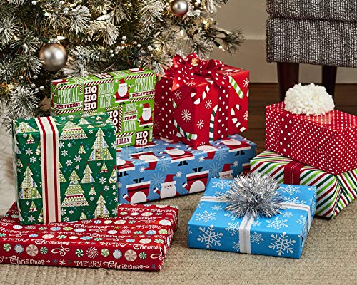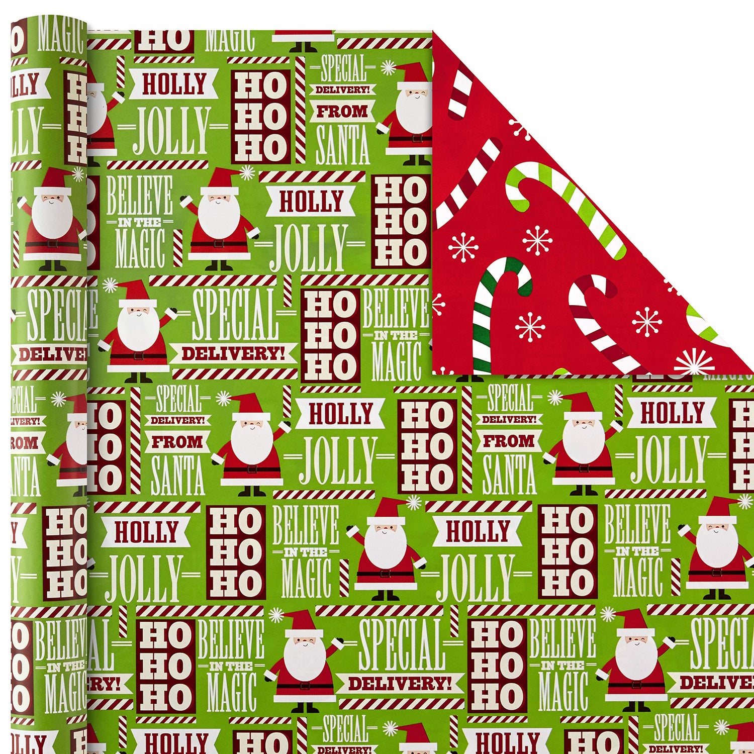 Hallmark Reversible Quad Pack Wrapping Paper (Santa & Trees, 4 Gift Wrap Rolls)