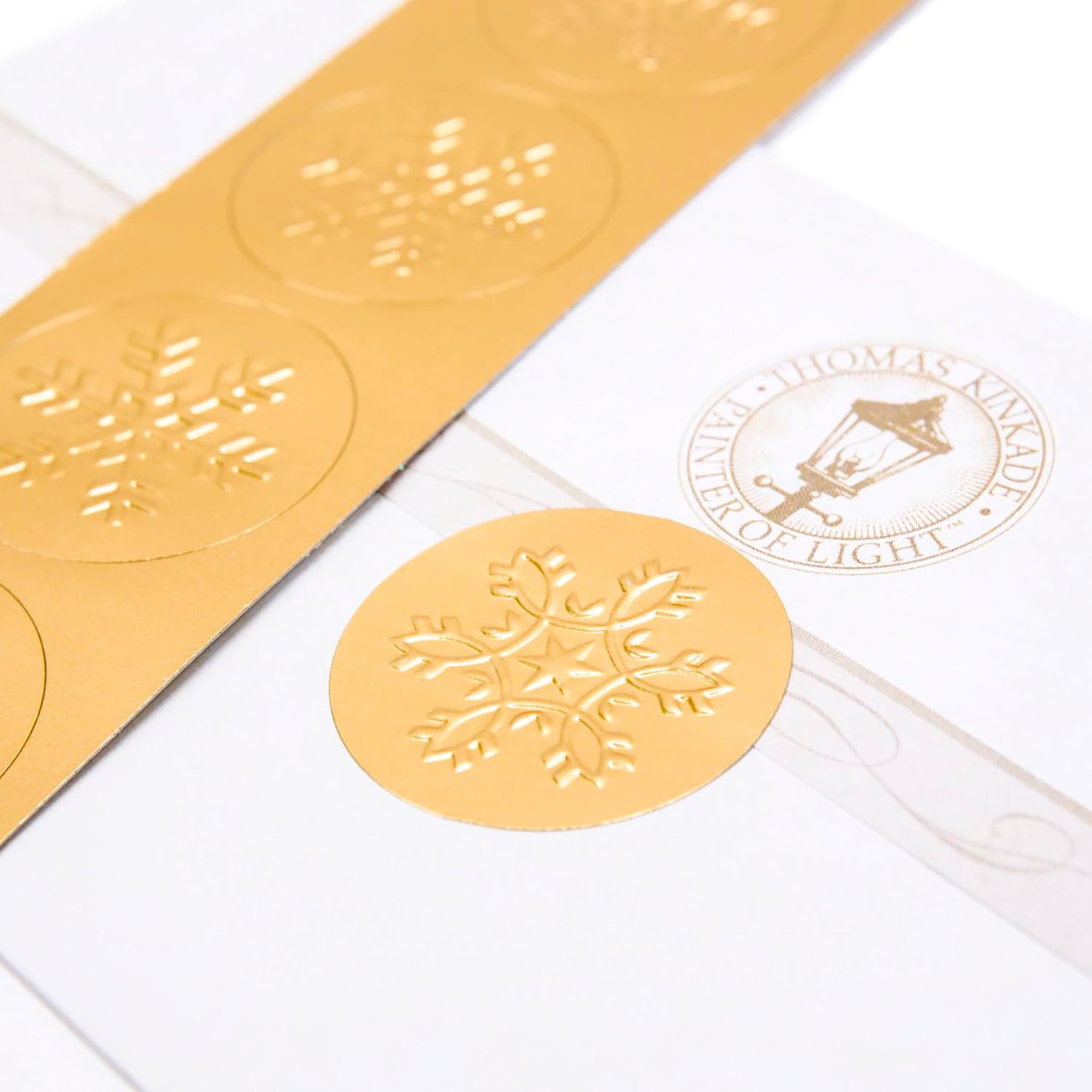 • Assortment includes three designs featuring classic Thomas Kinkade paintings of snowy houses. Inside messages for each design: House with red shutters design reads, “May the joy of the holiday season fill your home with happiness.” House with sled design reads, “Warmly thinking of you and wishing you a very merry Christmas.” House with Christmas tree design reads, “Warm moments, happy memories, wishing you these at Christmas and always.”