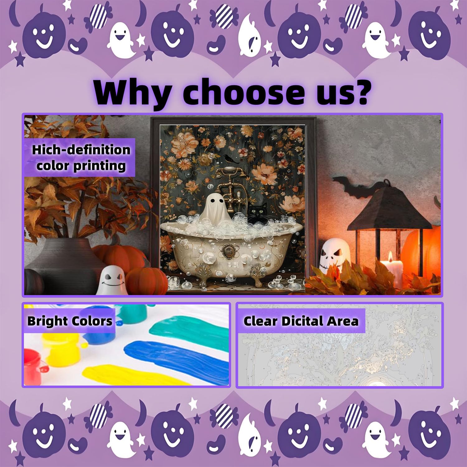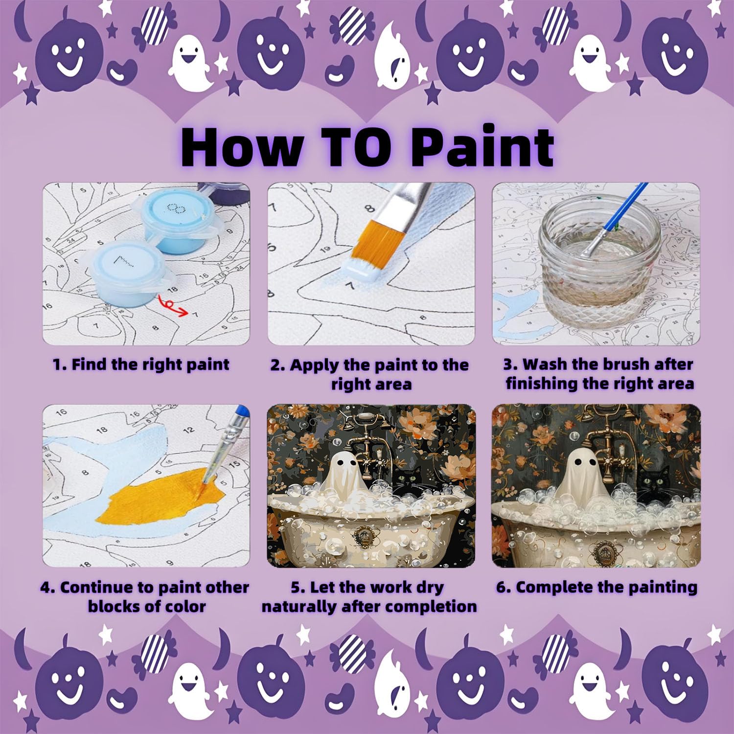 Halloween Paint by Numbers Kit for Adults Beginner-Funny Bathing Ghost and Black Cat Adult Paint by Number Kits on Canvas,Retro Horror DIY Acrylic Painting by Numbers for Gift Home Decor(16x20inch)