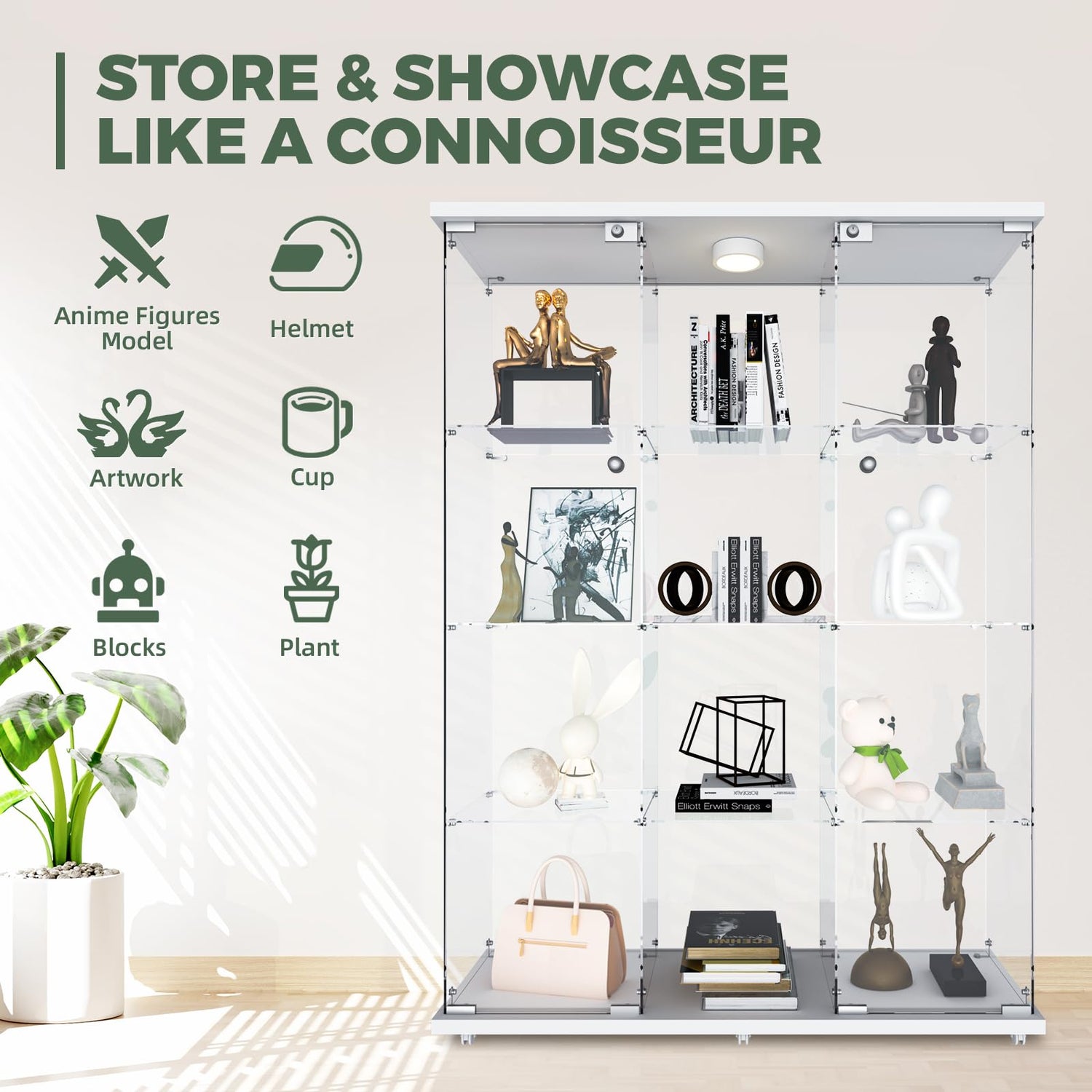 - Tempered Glass with High Clarity: Made from 4mm ultra-clear tempered glass, this glass curio cabinet offers superior transparency while protecting items from dust and scratches. Safer and more durable than regular glass—perfect for showcasing collectibles, crystal figures, or personal awards