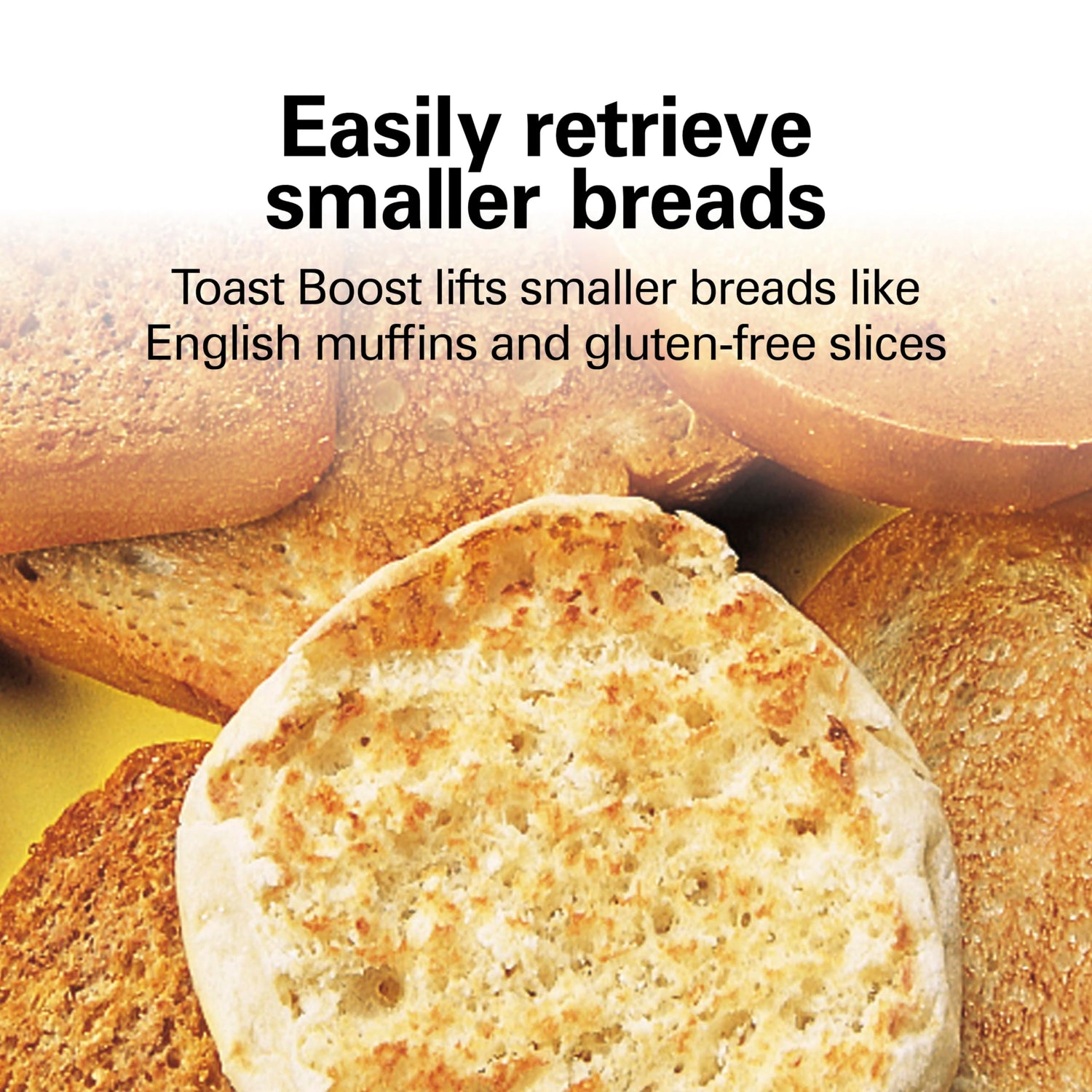 - EASILY RETRIEVE SMALLER BREADS: Toast Boost lifts smaller breads like English muffins and gluten-free bread slices, so they’re easier to retrieve from the bread toaster after toasting.