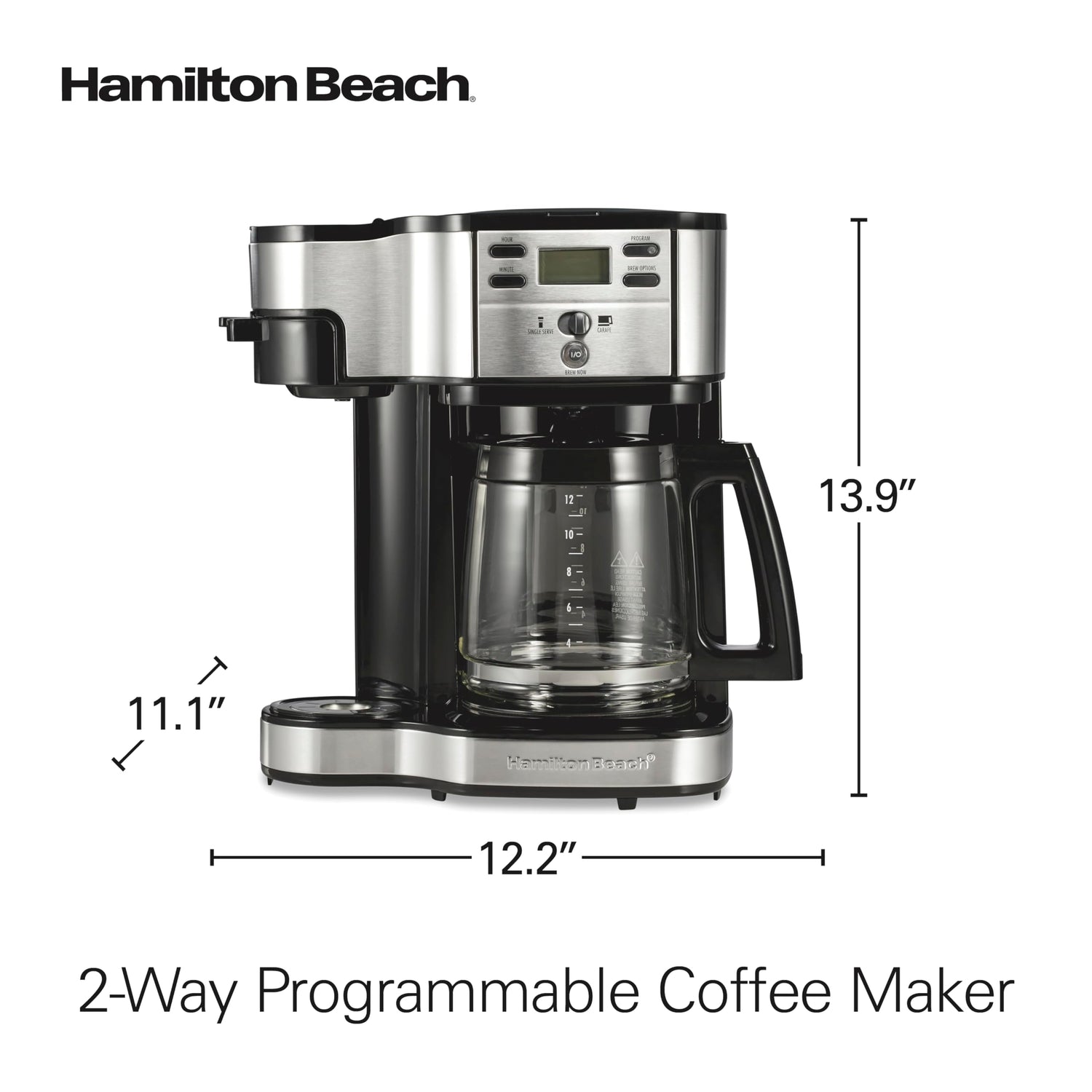Hamilton Beach 2-Way 12 Cup Programmable Drip Coffee Maker & Single Serve Machine, Glass Carafe, Auto Pause and Pour, Black (49980R)