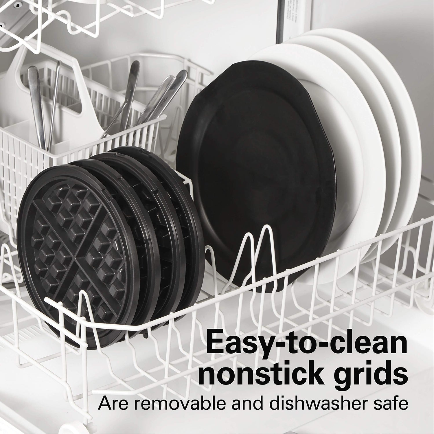 - EASY-TO-CLEAN NONSTICK GRIDS. The nonstick waffle maker has grids that remove for easy cleaning by hand or in the dishwasher.