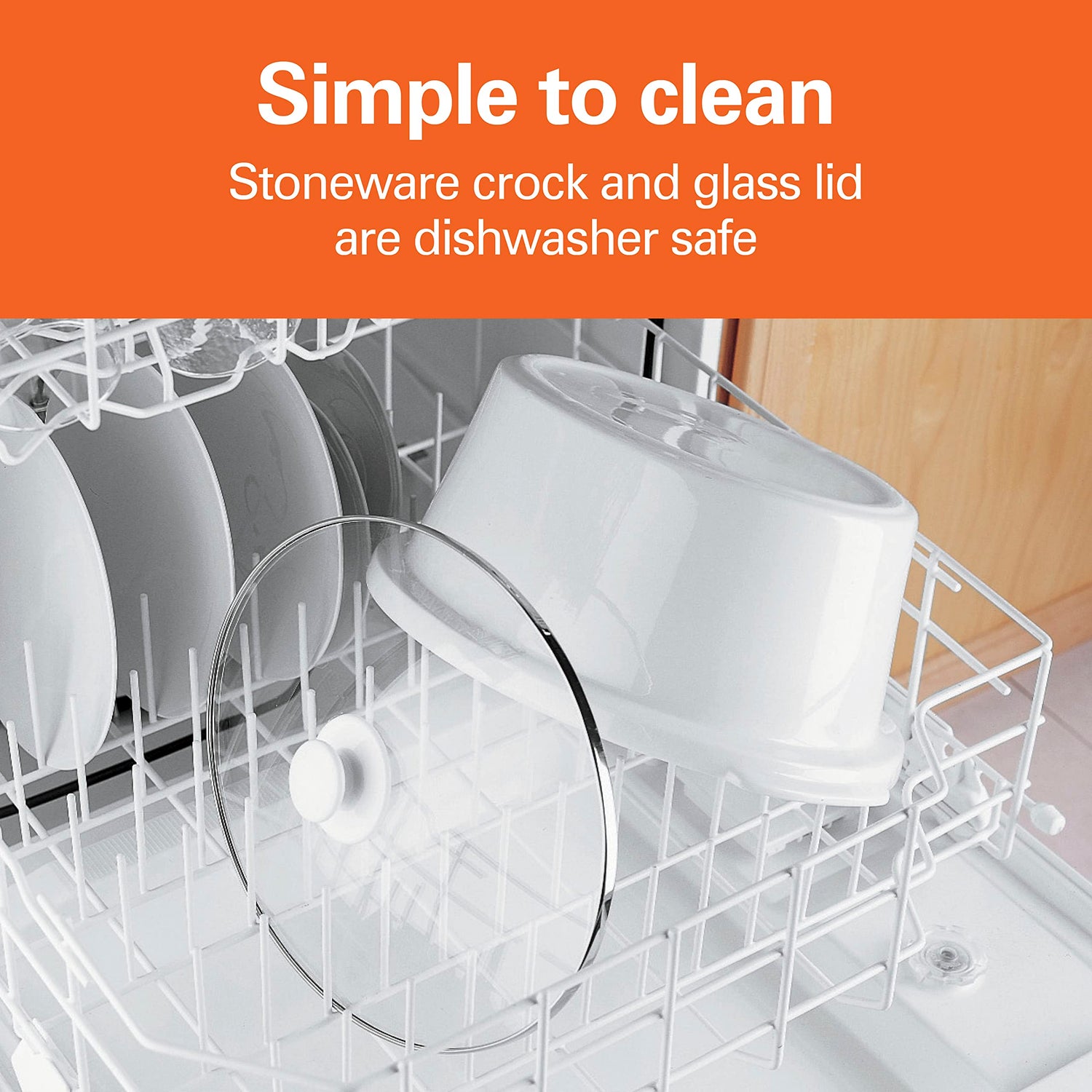 - SIMPLE TO CLEAN: This slow cooker has a removable stoneware crock and glass lid that are dishwasher safe and easy to clean. The crock can also be used in the oven or microwave
