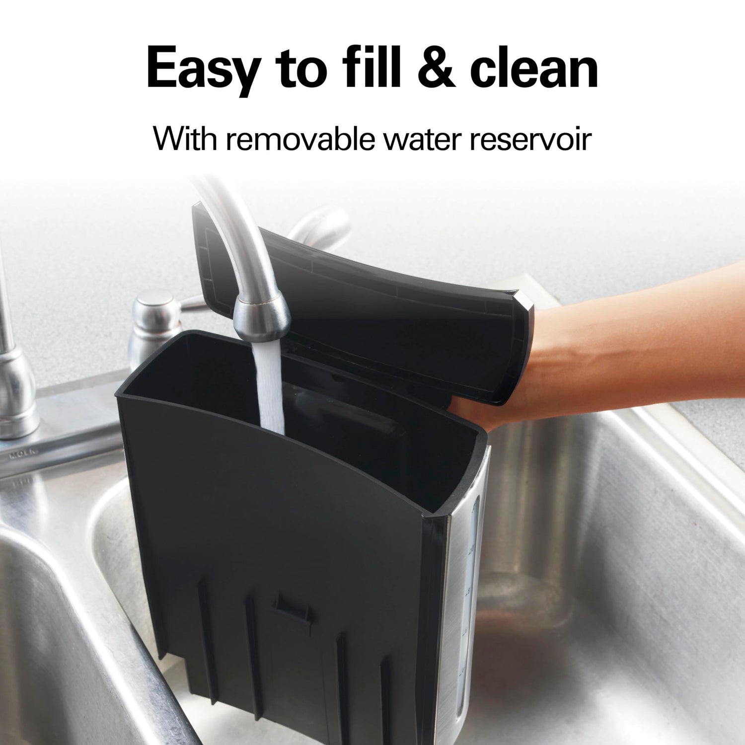 - EASY TO FILL WITH REMOVABLE WATER RESERVOIR: The water reservoir removes for easy filling and cleaning. With a 12 cup capacity, you can brew enough coffee for everyone at once. Enclosed brewing system with internal heater keeps coffee hot and fresh for up to 4 hours
