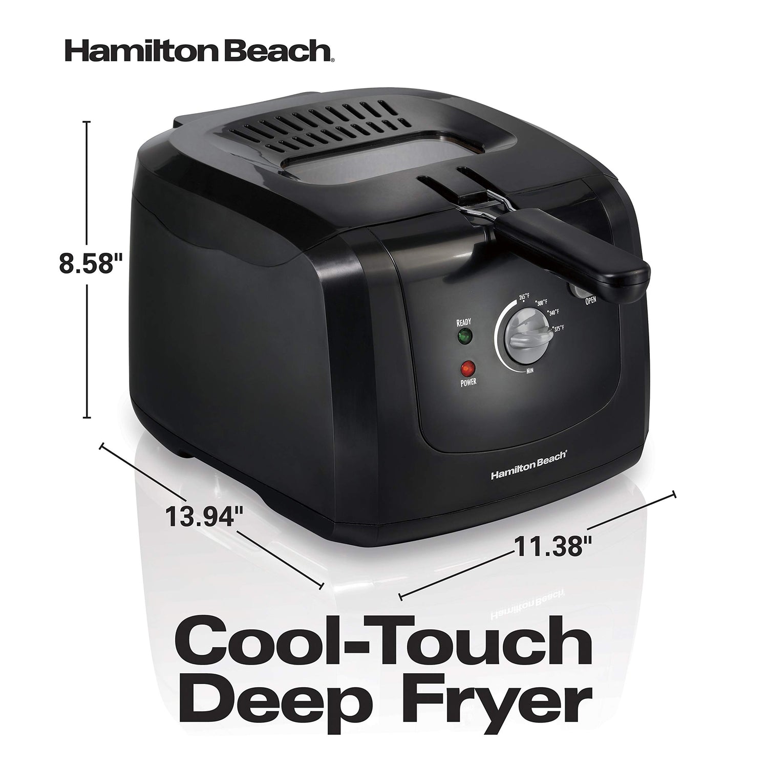 Hamilton Beach Cool Touch Electric Deep Fryer with Basket and Lid, 2 Liters / 8 Cups Oil Capacity, Adjustable Temperature, 1500 Watts for Fast Heat-up, Viewing Window, Easy to Clean, Black (35021)