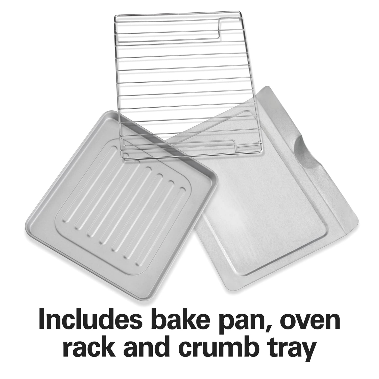 - COOK YOUR WAY WITH 3 COOKING FUNCTIONS: This toaster oven gives you the versatility to bake, broil and toast. It has temperature options ranging from 200-450° F — great for everyday tasks like heating leftovers, broiling chicken breasts and making toast.