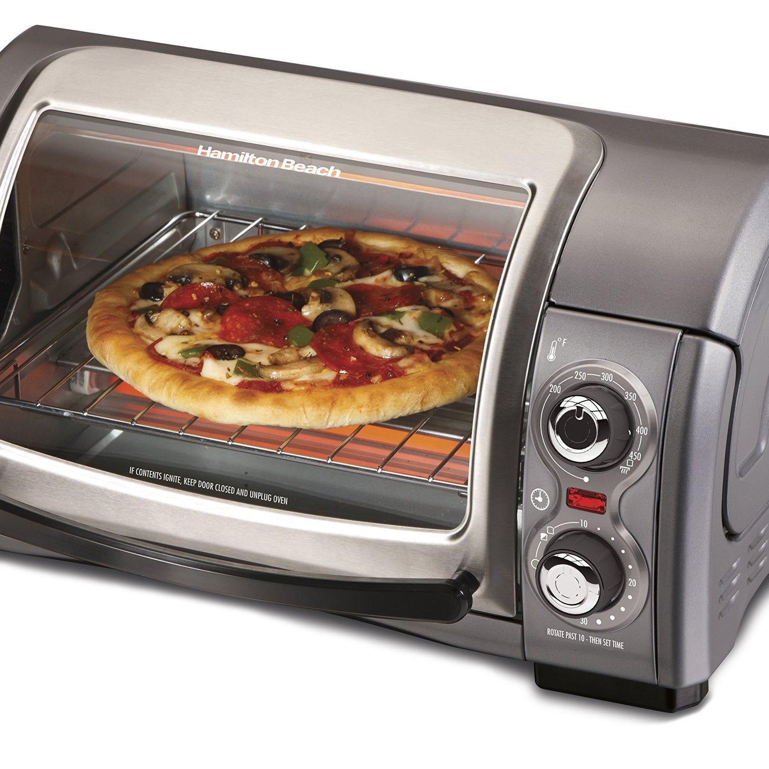 - FITS 4 SLICES OF TOAST OR A 9" PIZZA: This Hamilton Beach toaster oven has room for cooking everything from snacks to side dishes.