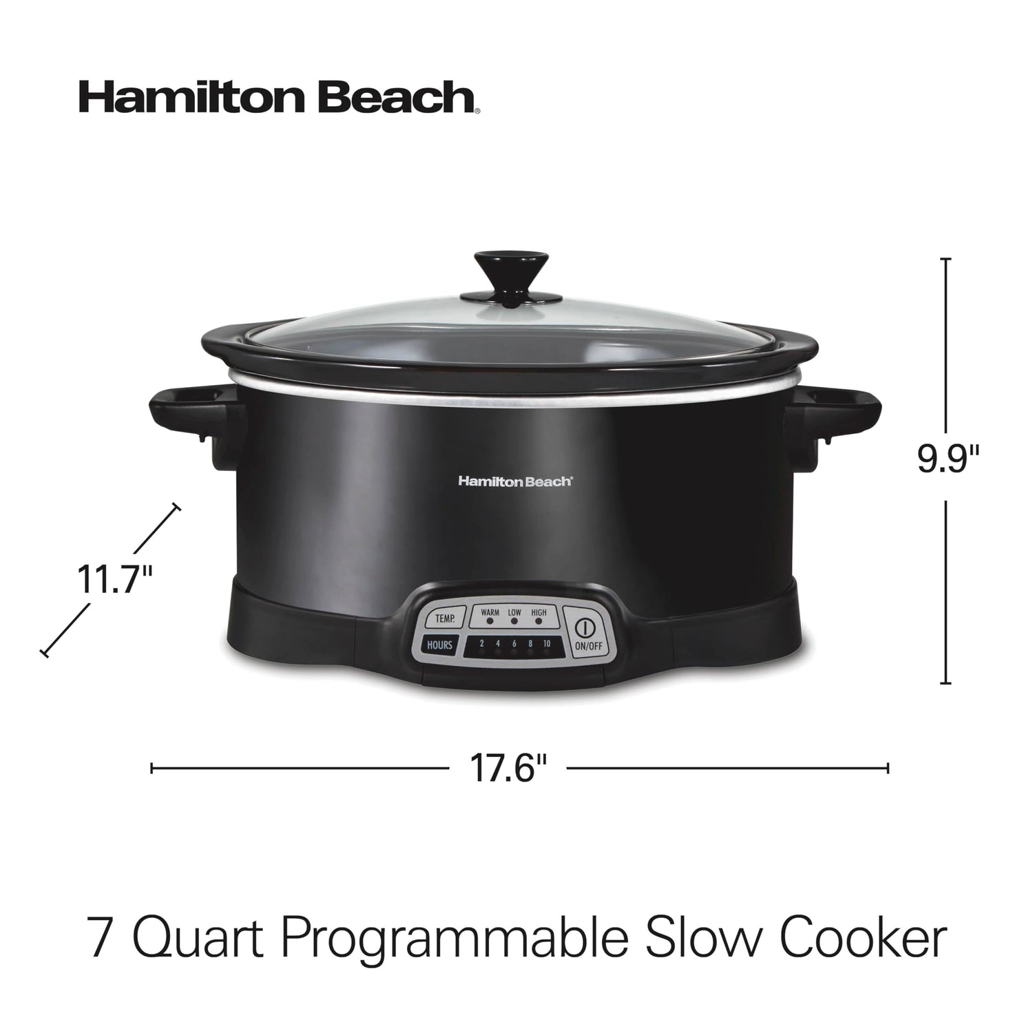 Hamilton Beach Portable 7 Quart Programmable Slow Cooker with Three Temperature Settings, Lid Latch Strap for Easy Travel, Dishwasher Safe Crock, Black (33474G)