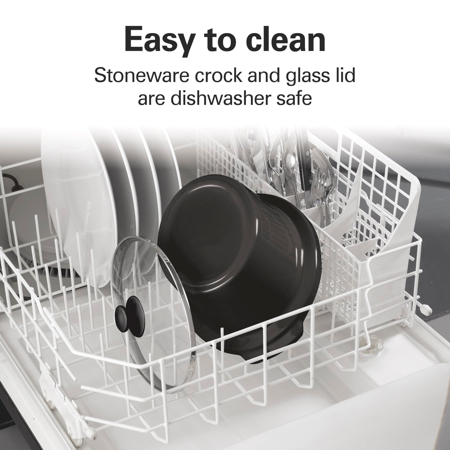- EASY TO CLEAN: This Hamilton Beach slow cooker has a removable stoneware crock and glass lid that are dishwasher safe, and the touchpad easily wipes clean.