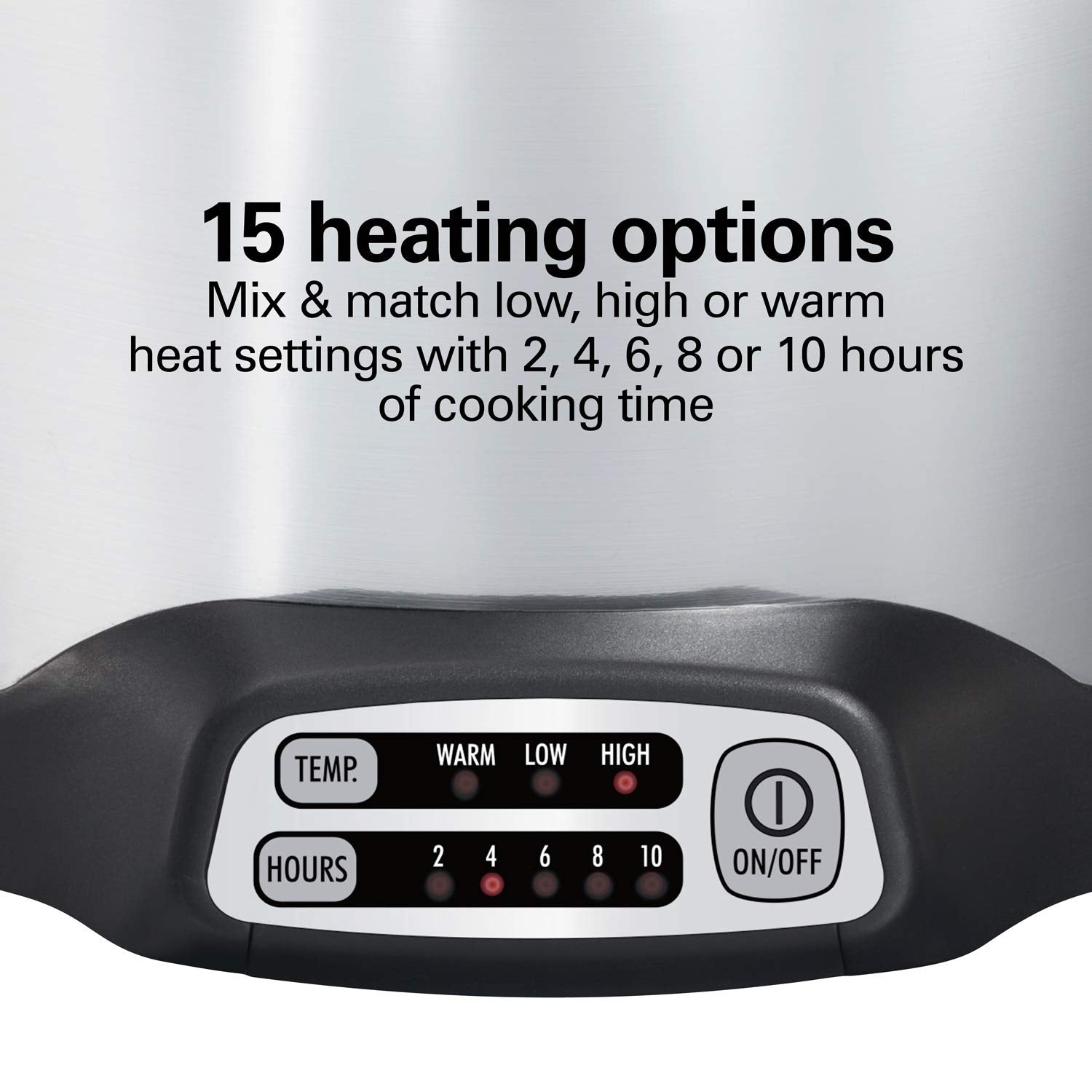 - 15 HEATING OPTIONS: This programmable slow cooker lets you mix and match high, low or warm heat settings with your choice of 2, 4, 6, 8 or 10 hours of cooking time.