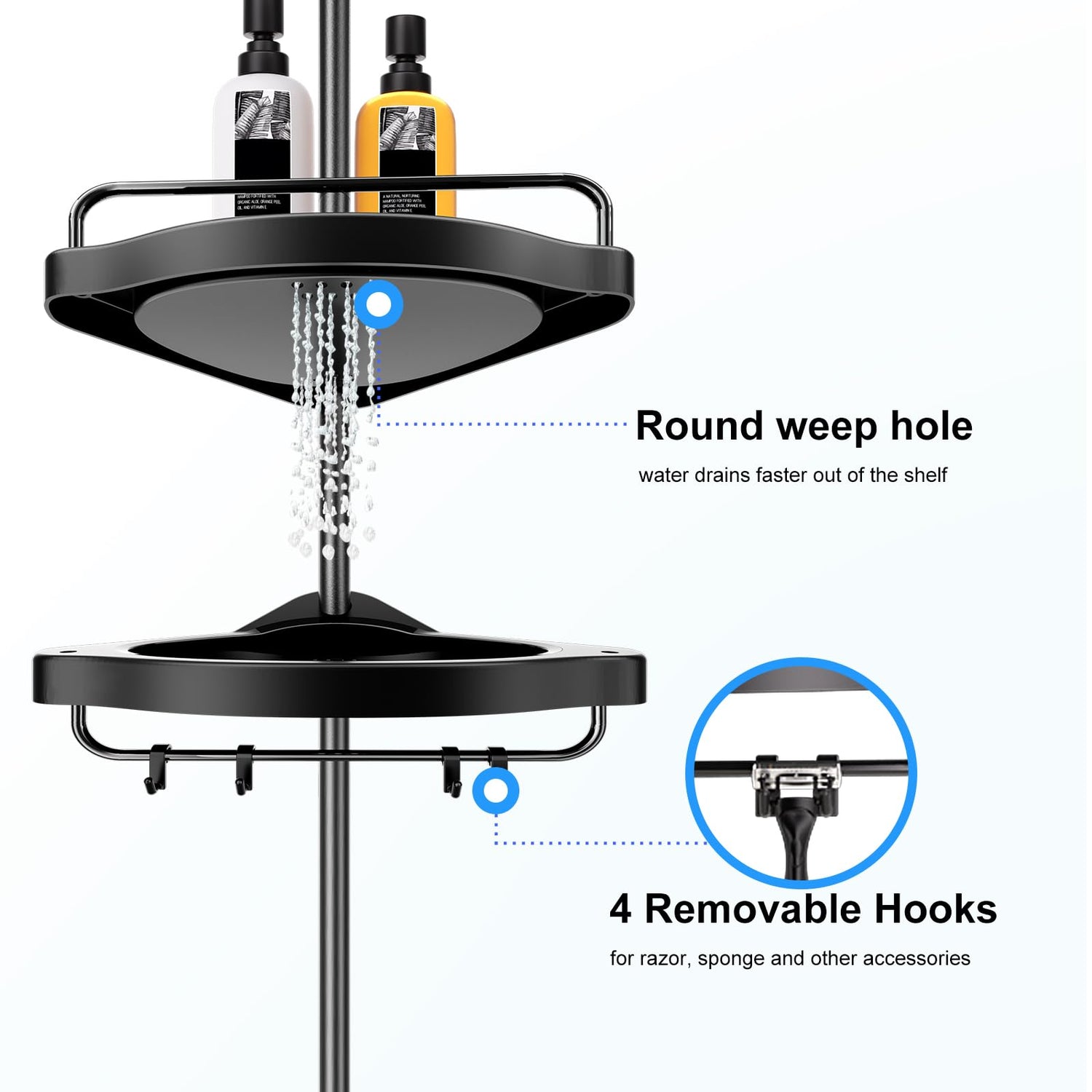 - FIT MOST SHOWERS OR BATHROOM: This pole shower could be adjusted 38 inches to 118 inches height. Ideal use for bathroom, bathtub and shower and so on with it's high capacity. Besides, let your bathroom or shower room looks pretty and orderliness. It also has a self-draining system, so it will not accumulate water and will keep your bath products clean and tidy