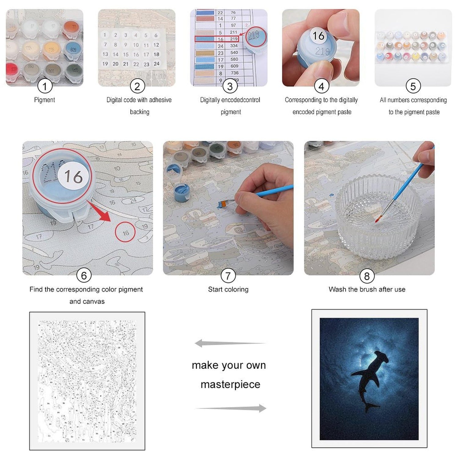 Hammerhead Shark Paint by Numbers Kits for Adults Beginners Canvas Painting for Home Wall Decor 50x40cm