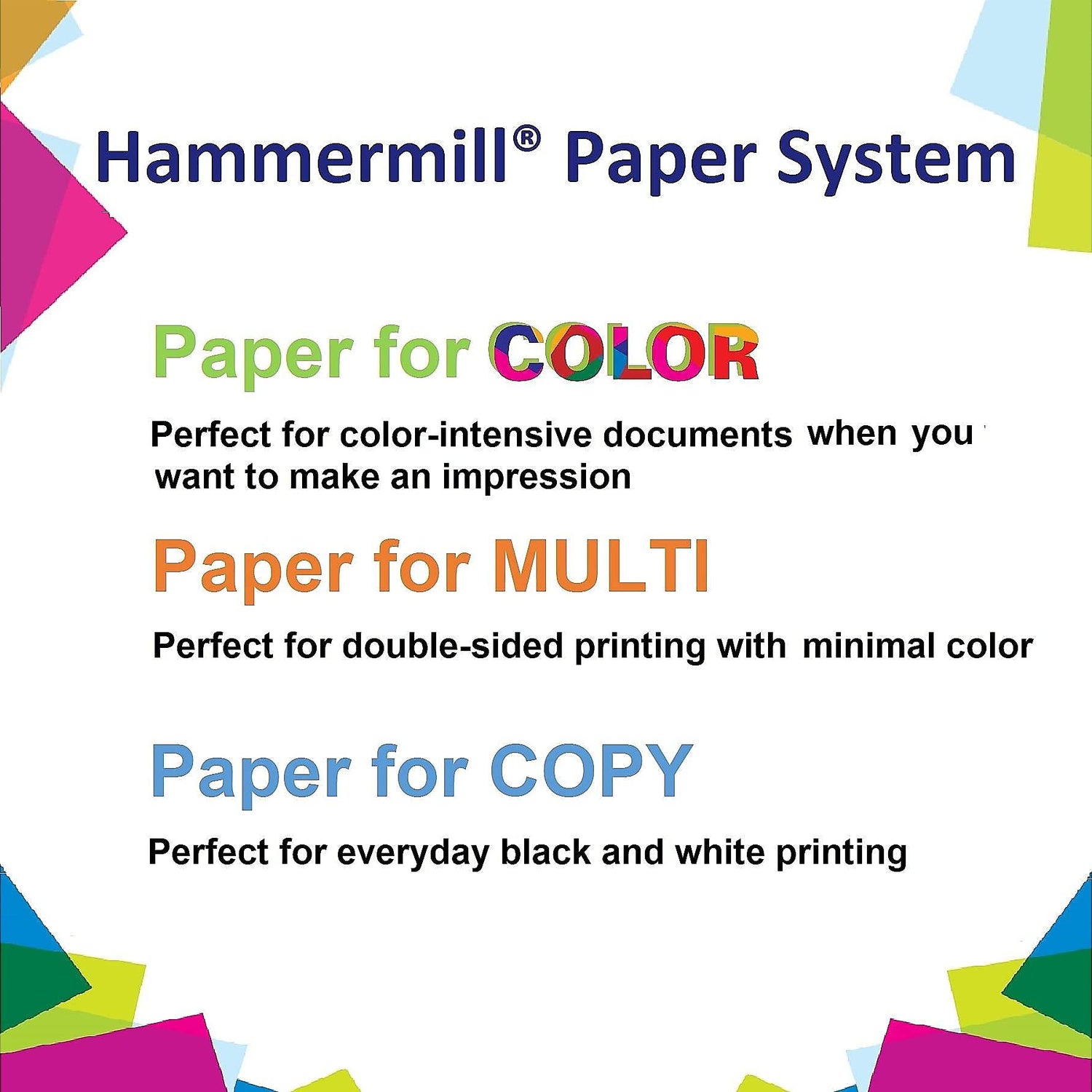- IDEAL FOR EVERYDAY USE – Perfect for use in all home & office printers and all imaging equipment, this Hammermill multi-purpose paper has good opacity to minimize show-through for double-sided printing. It’s also acid-free to prevent yellowing over time.