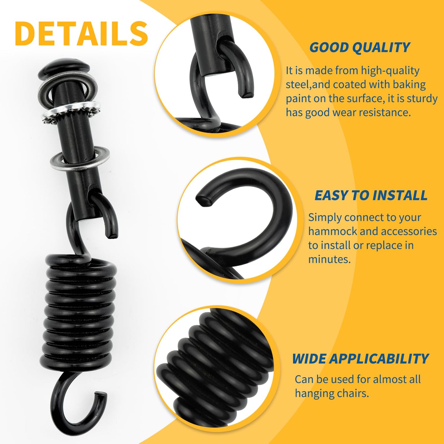 Hammock Chair Ultimate Hanging Kit by JPKTA - 500lbs Capacity Egg Hammock Chair Spring Hook and Pin Plug Hardware Black for Hanging Basket Chairs Hammock and Porch Swings Replacement Parts