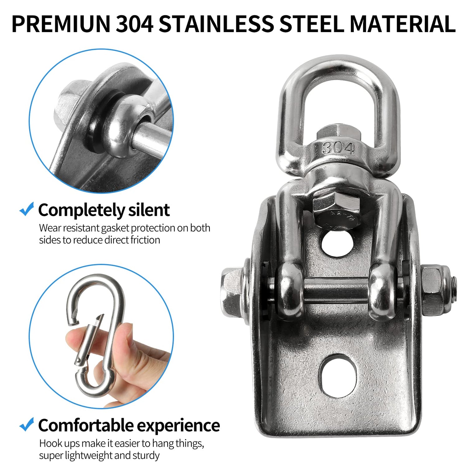 - PREMIUM MATERIAL: All parts made of high quality heavy-duty 304 stainless steel, with no oxidation, no rust, corrosion resistance strong enough and high toughness. The thick material ensures their durability and safety.