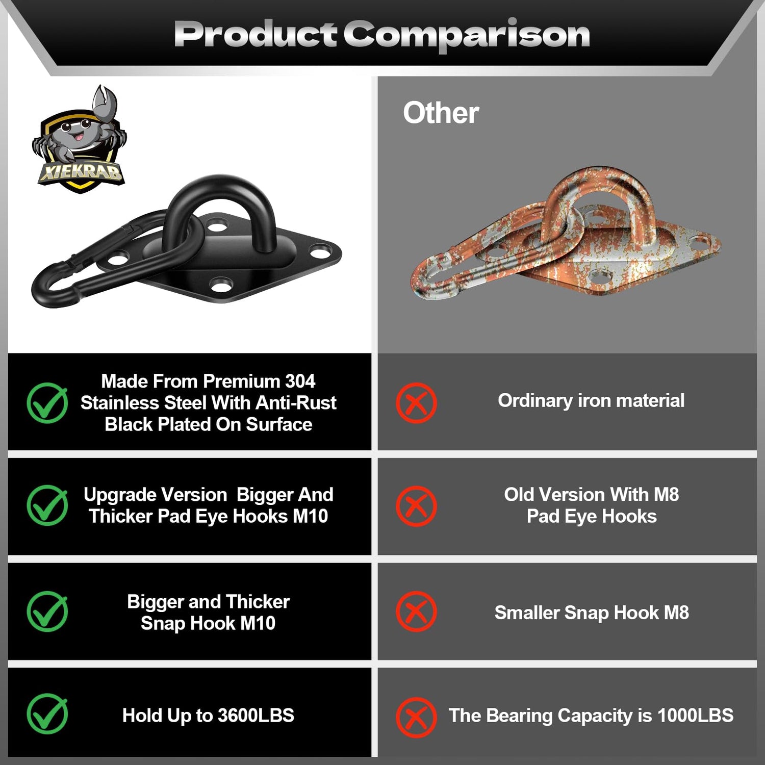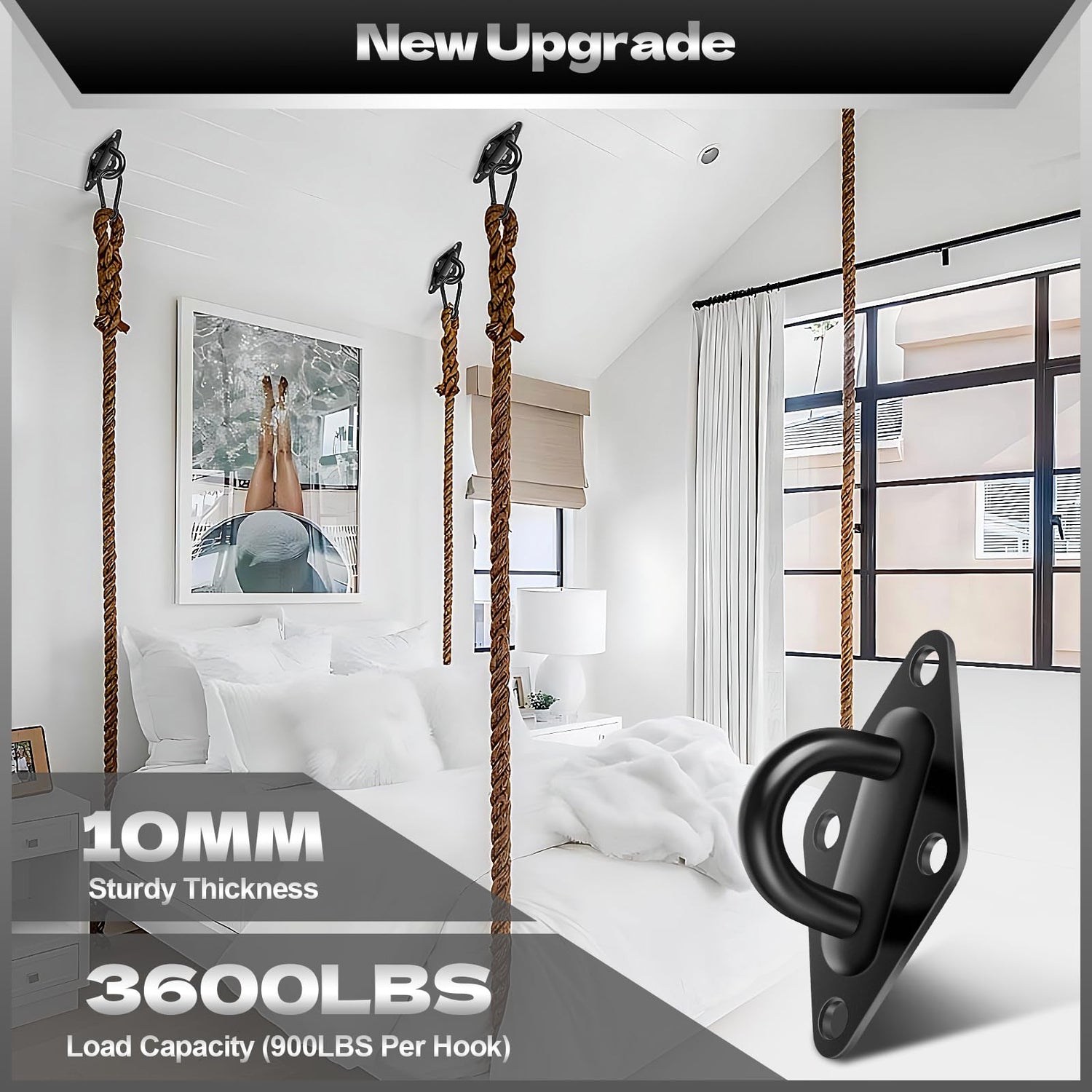- Carrying Capacity : Crafted with a robust 10mm thickness, Our kit is engineered to carry an astounding 3600 lbs load capacity (900 lbs per hook). Its rugged construction ensures reliable performance.
