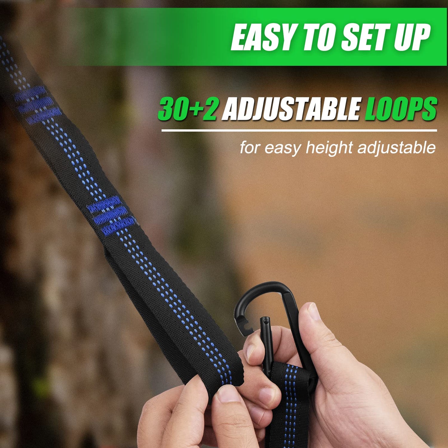 - SIMPLE SETUP - Equipped with carabiners for easy setup, our tree straps can be used repeatedly.