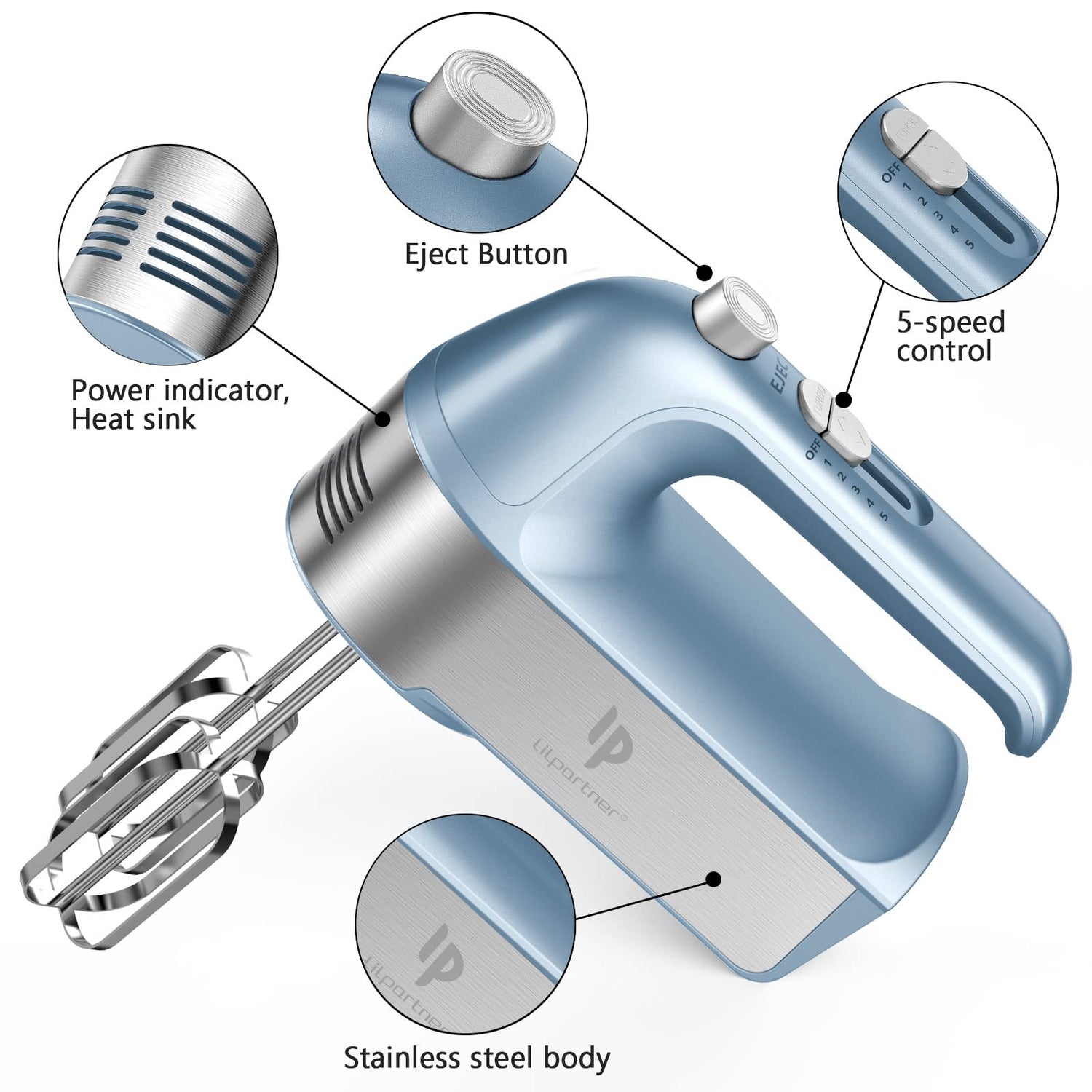• ❤VERSATILE SAFE ATTACHMENTS : Electric hand mixer includes 5 stainless steel attachments, two dough hooks, two beaters and a whisk, perfect for cooking or baking.