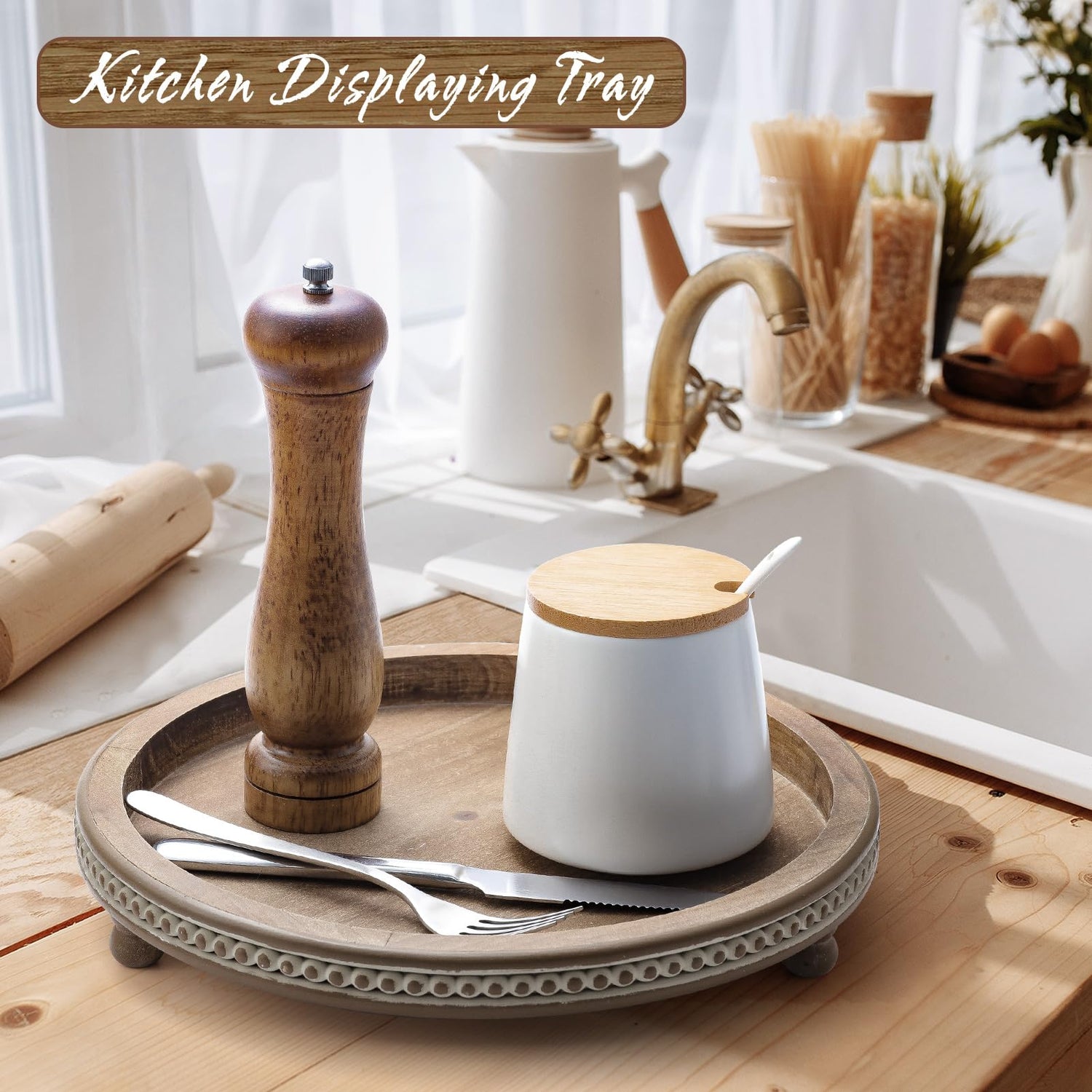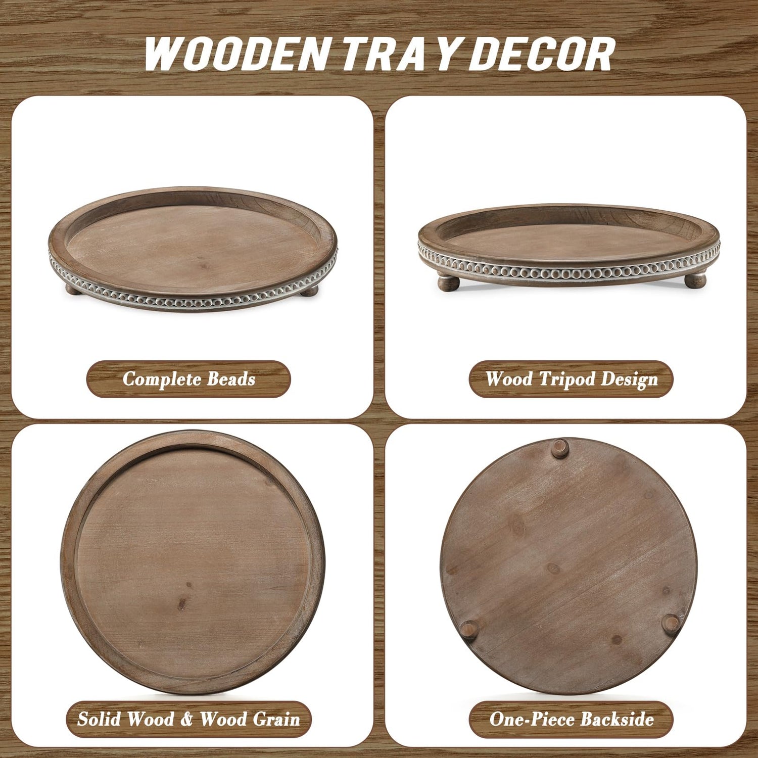 - WELL-CONSTRUCTED& PERFECT SIZE:Each table tray is meticulously crafted from high-quality wood with meticulous attention to detail. The solid wood construction ensures long-lasting durability, while the exquisite finish adds an elegant touch to your home decor. Measuring approximately 12"L x 12"W x 1.75"H, this round tray is perfect for everyday use and decoration, providing you with unparalleled convenience.