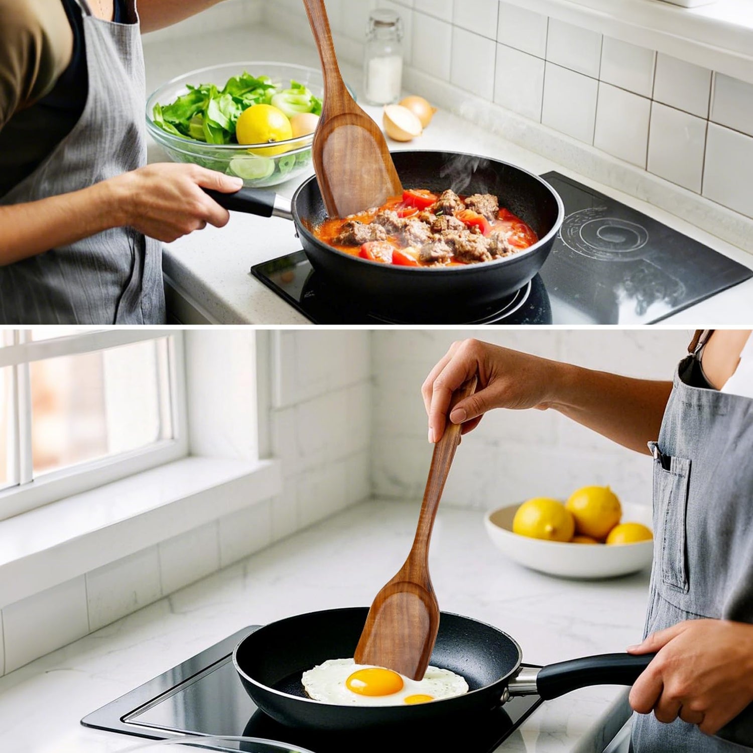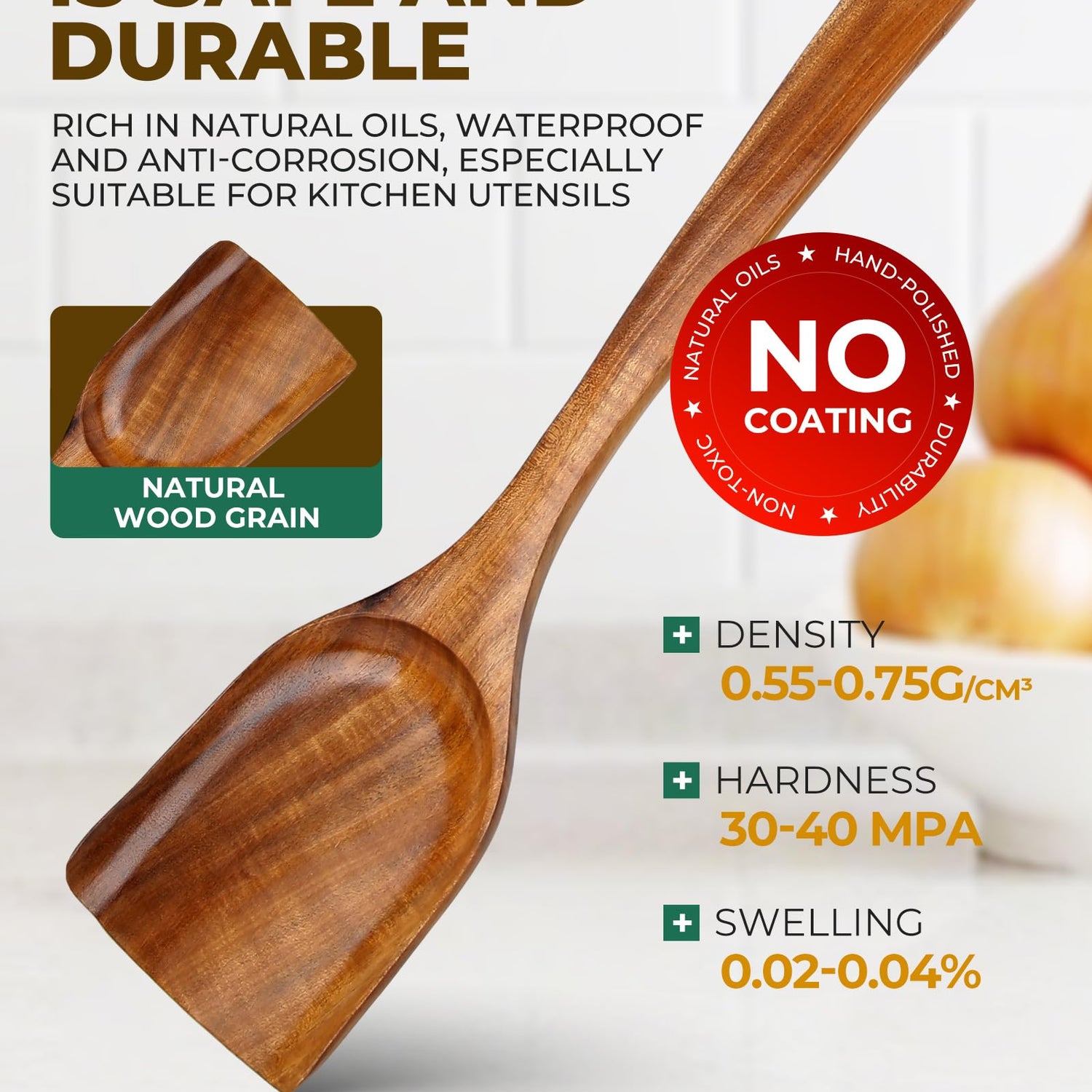 - 【Non-Scratch, Non-Stick Design】: Crafted from high-quality Teak Wood, these spatulas are perfect for use with non-stick cookware. The smooth, durable wood ensures your pots and pans remain scratch-free, offering a safer, more gentle option than metal or plastic spatulas. Enjoy cooking without worrying about damaging your precious cookware.