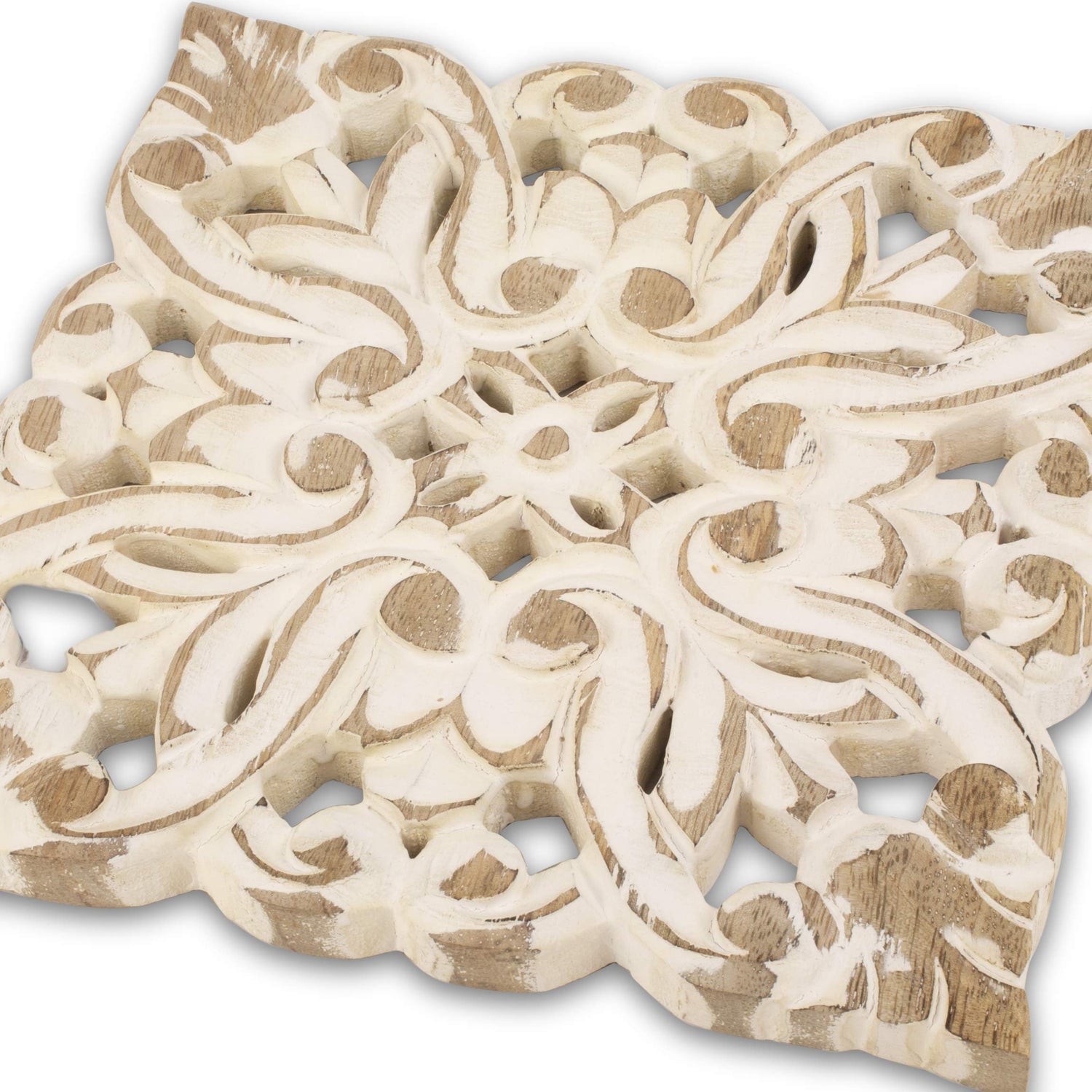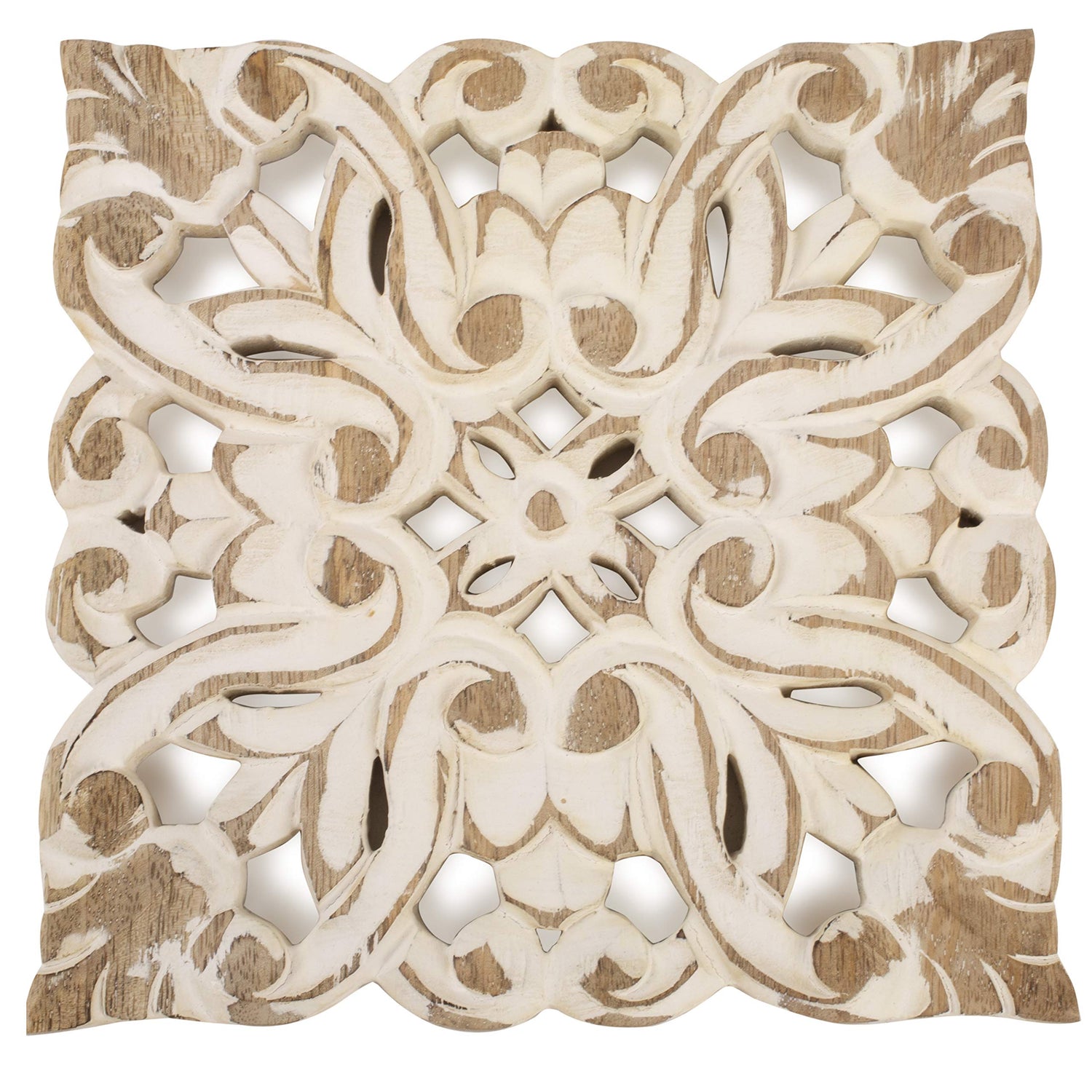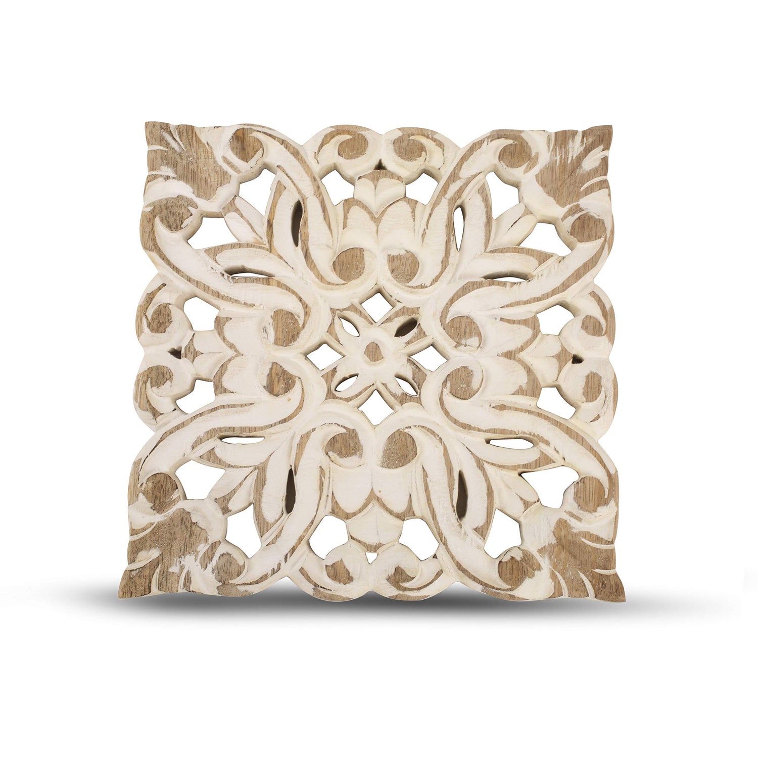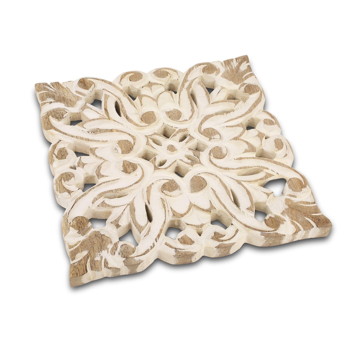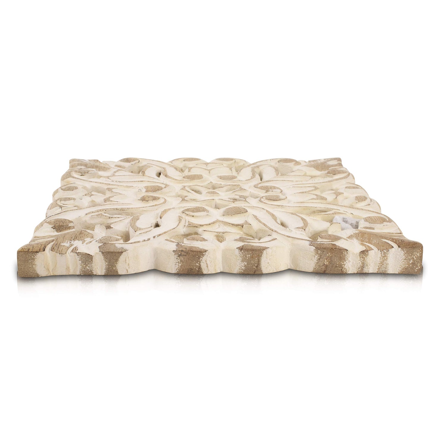 - 8 INCH - SQUARE - WHITE WASH FINISH - Just the right size to hold most hot plates and dishes while not frustratingly taking extra table space