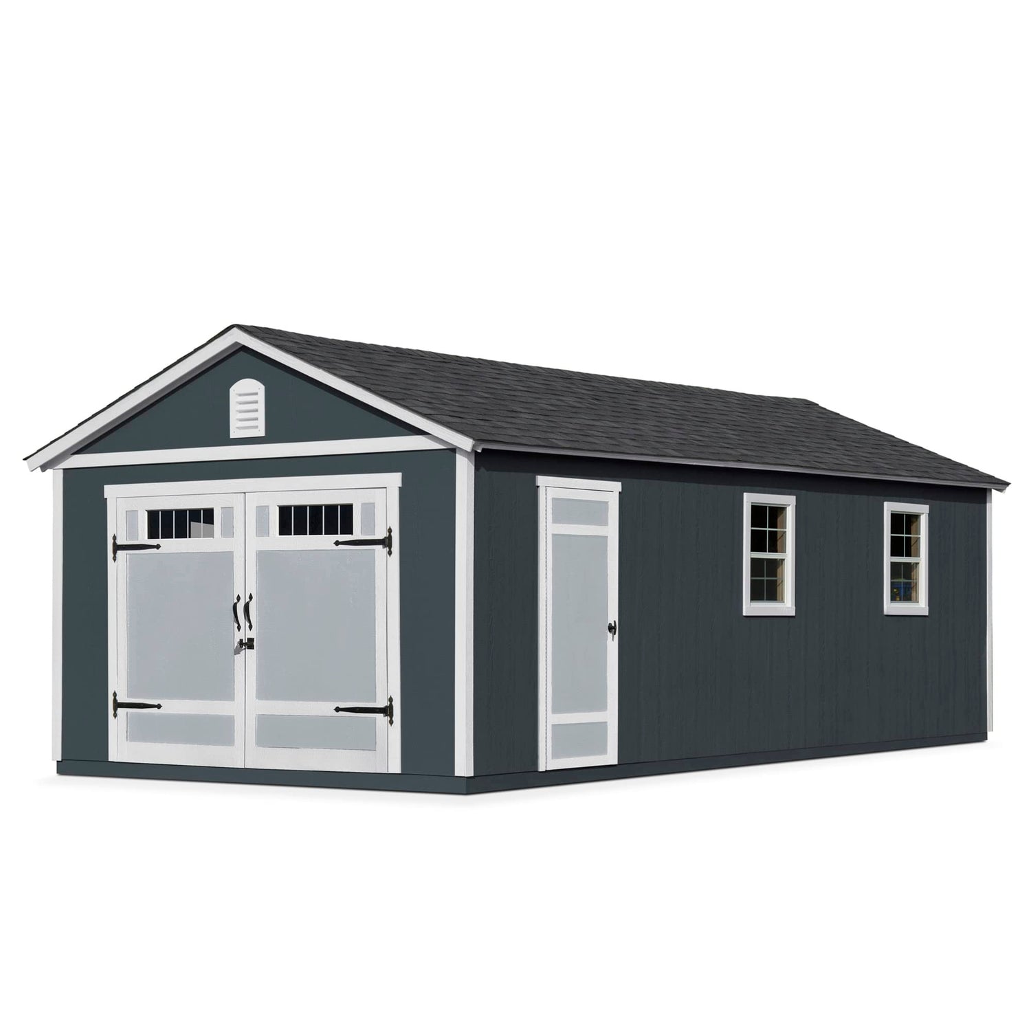 Life is too short to spend your time in a small-scale garage. That’s why Handy Home brings you the expansive and multi-functional Manhattan 12x 24 Garage shed. With 7' tall side walls and 8' wide double doors, this wooden garage shed is perfect for storing oversized lawn tractors, ATVs,s, and your daily driver. Three windows and transom door windows invite much-needed natural light inside to create a bright and inviting atmosphere. The DIY garage shed kit features pre-cut components to provide a simple assembly experience. This kit is delivered without a floor to allow for custom foundation types such as concrete slabs. With all the money and time, you save, you can transform this 12x24 garage wood shed into a state-of-the-art mechanic workshop, gym or she shed/man cave.