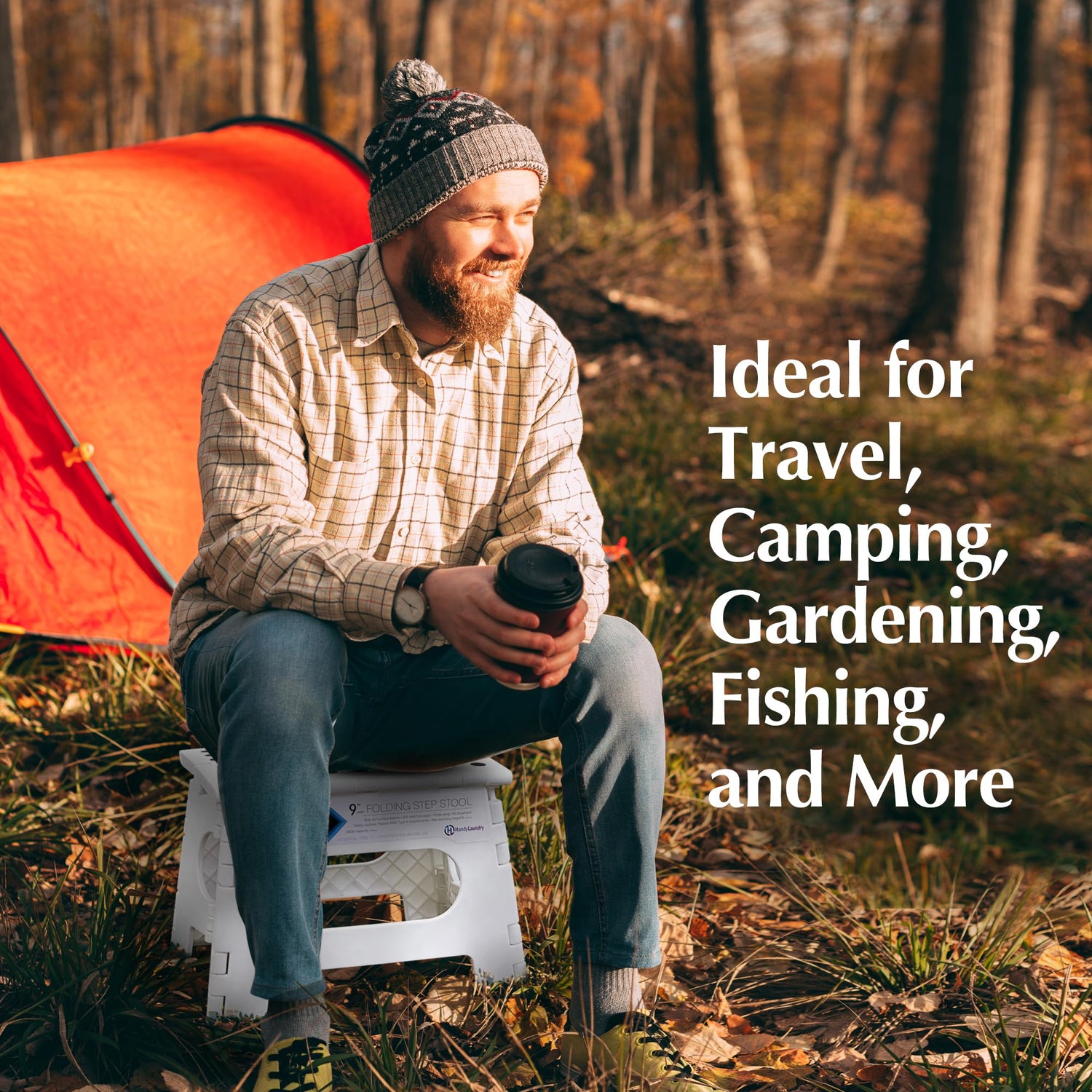 • SPACE-SAVING DESIGN: Easy to fold and slim enough to fit in tight spaces, the folding stool is perfect for small apartments or cluttered homes. Store it in a drawer, between appliances, or even under the bed