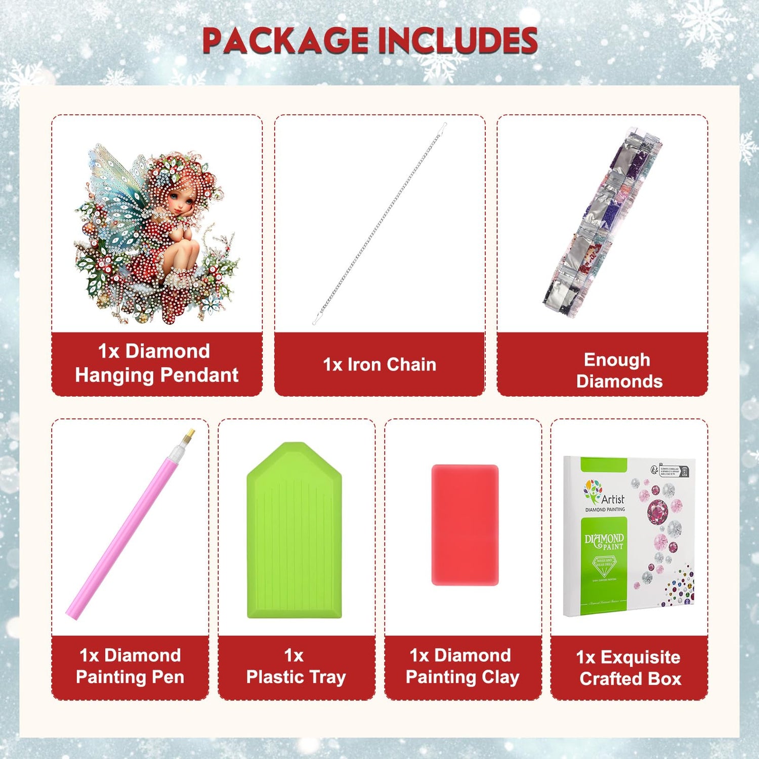 Hanging Diamond Art Kit for Adult, Christmas Angel, 5D Special Shaped Rhinestone Diamond Painting Ornament, Christmas Fairy, DIY Acrylic Diamond Art Painting Window Pendants Home Garden Wall Decor
