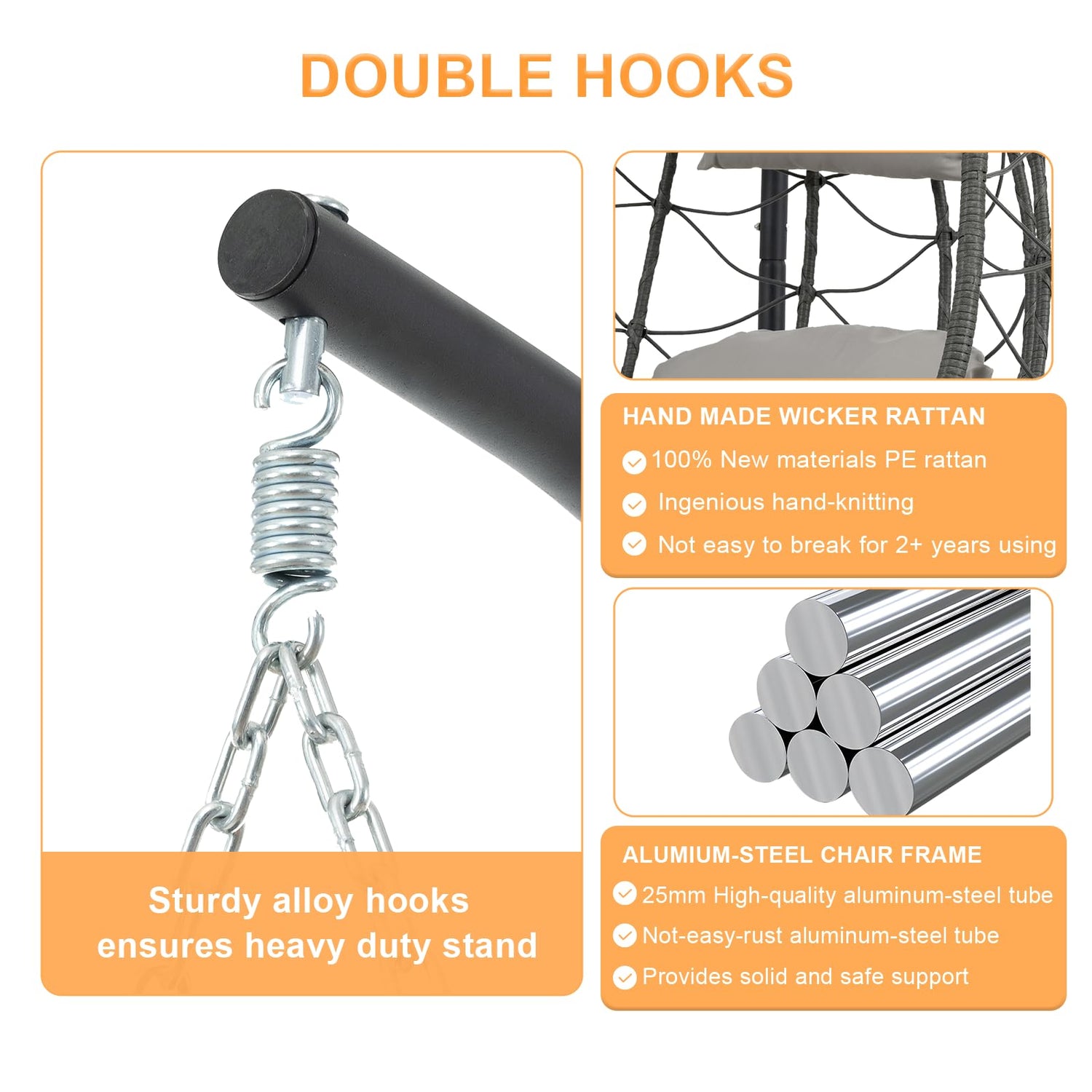 - [More Sincere Gift]: The hanging egg chair with stand must be an excellent addition to your porch, backyard, patio, garden. It can be an absolute surprise as a holiday gift for someone who loves you and your loved ones.