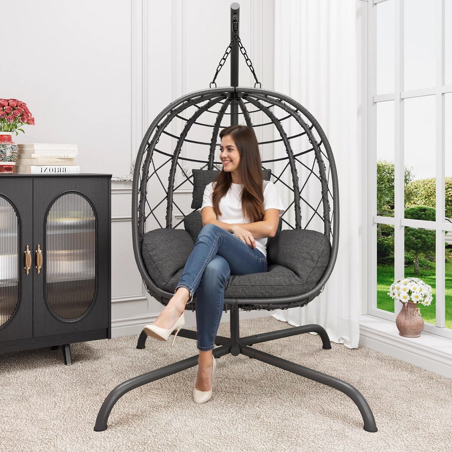 - 【Versatile Indoor & Outdoor Use】-Perfect for any space, this egg swing chair with stand seamlessly transitions from indoor to outdoor settings. Whether it’s your living room, bedroom, balcony, patio, or garden, this chair adds a touch of elegance and comfort to your home decor.