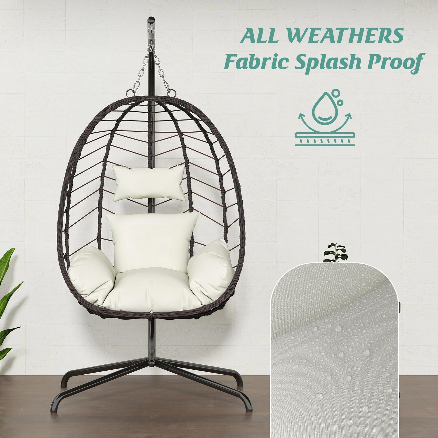 Hanging Egg Chair with Stand, Swinging Egg Chair Outdoor Indoor, Hanging Basket Chair with Cushion, Patio Wicker Hammock Chair 350lbs Capacity for Bedroom, Porch, Balcony, Backyard, Garden (Beige)