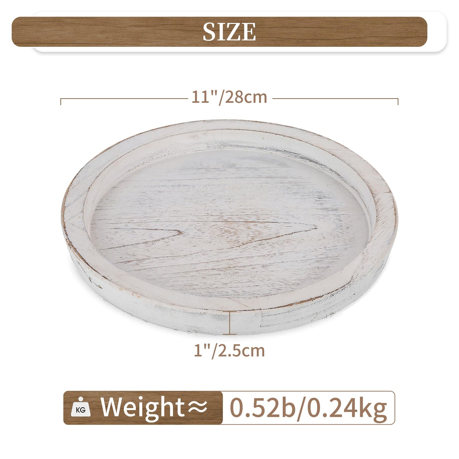 Hanobe Rustic Wooden Serving Tray: Round Wood Decorative Tray Rustic White Centerpiece Candle Holder Trays Farmhouse Ottoman Tray for Decor Kitchen Counter Home Decor for Coffee Table