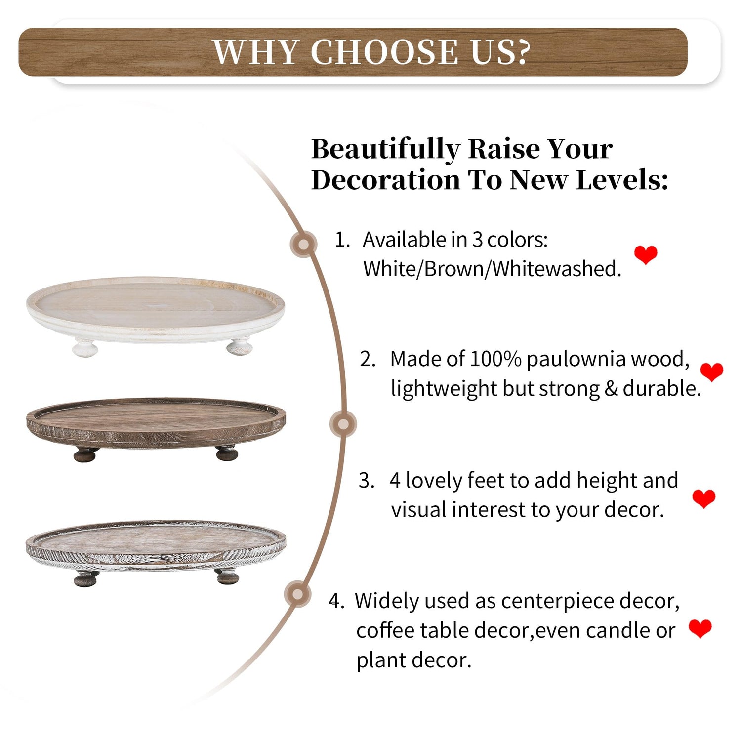 - LOVELY FOOT DESIGN - Each wood pedestal tray has 4 lovely rounded base raised feet, keep away from wet countertops and to avoid scratching shelves or tables and ,which can provide stability and give you a comfortable feel when displaying items, it’s a great way to add height and visual interest to your decor, adding a rustic and elegant character to your room.