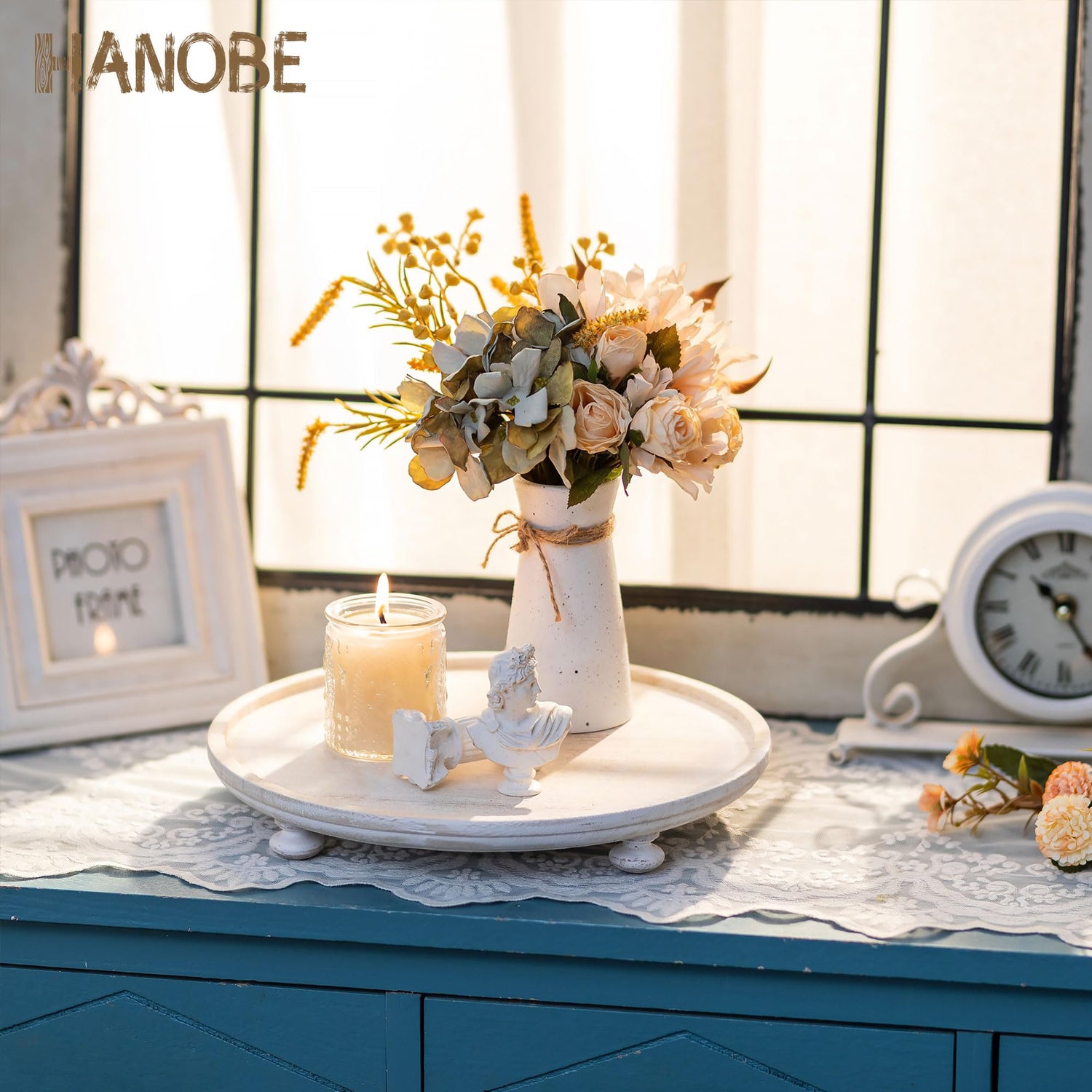 Hanobe Wood Risers for Decor: Rustic Round Wooden Pedestal Stand Tray for Display Farmhouse Table Decorative Risers for Dessert Candle Cake Plant, White 11"