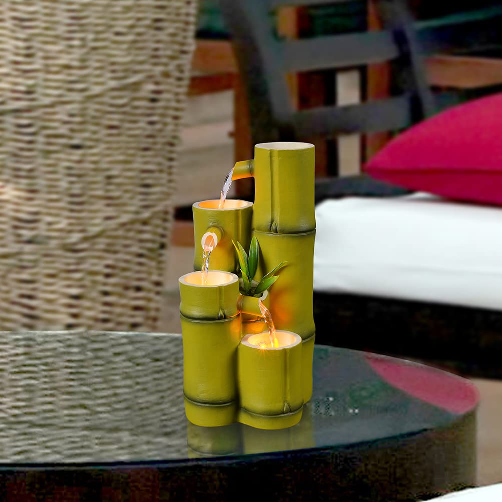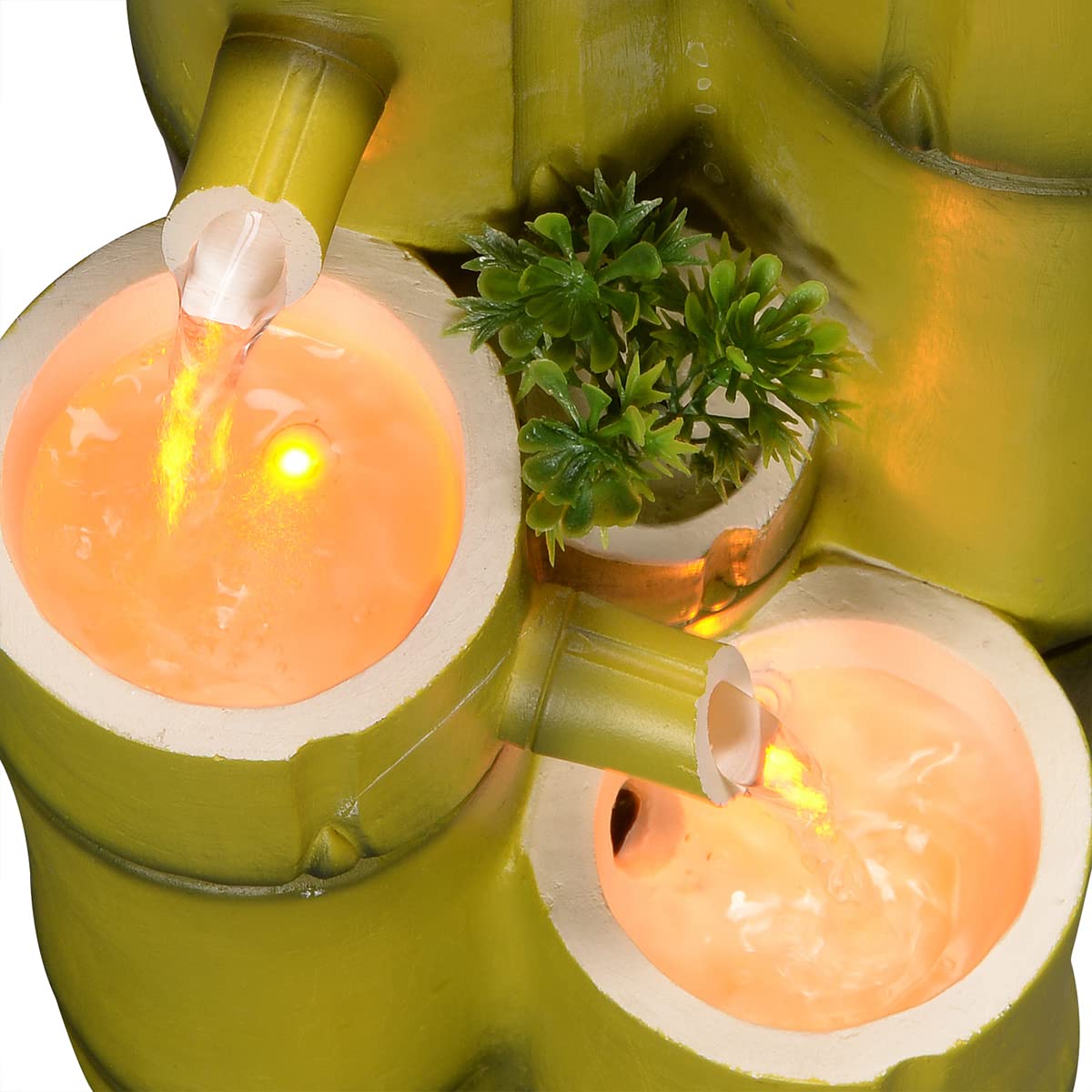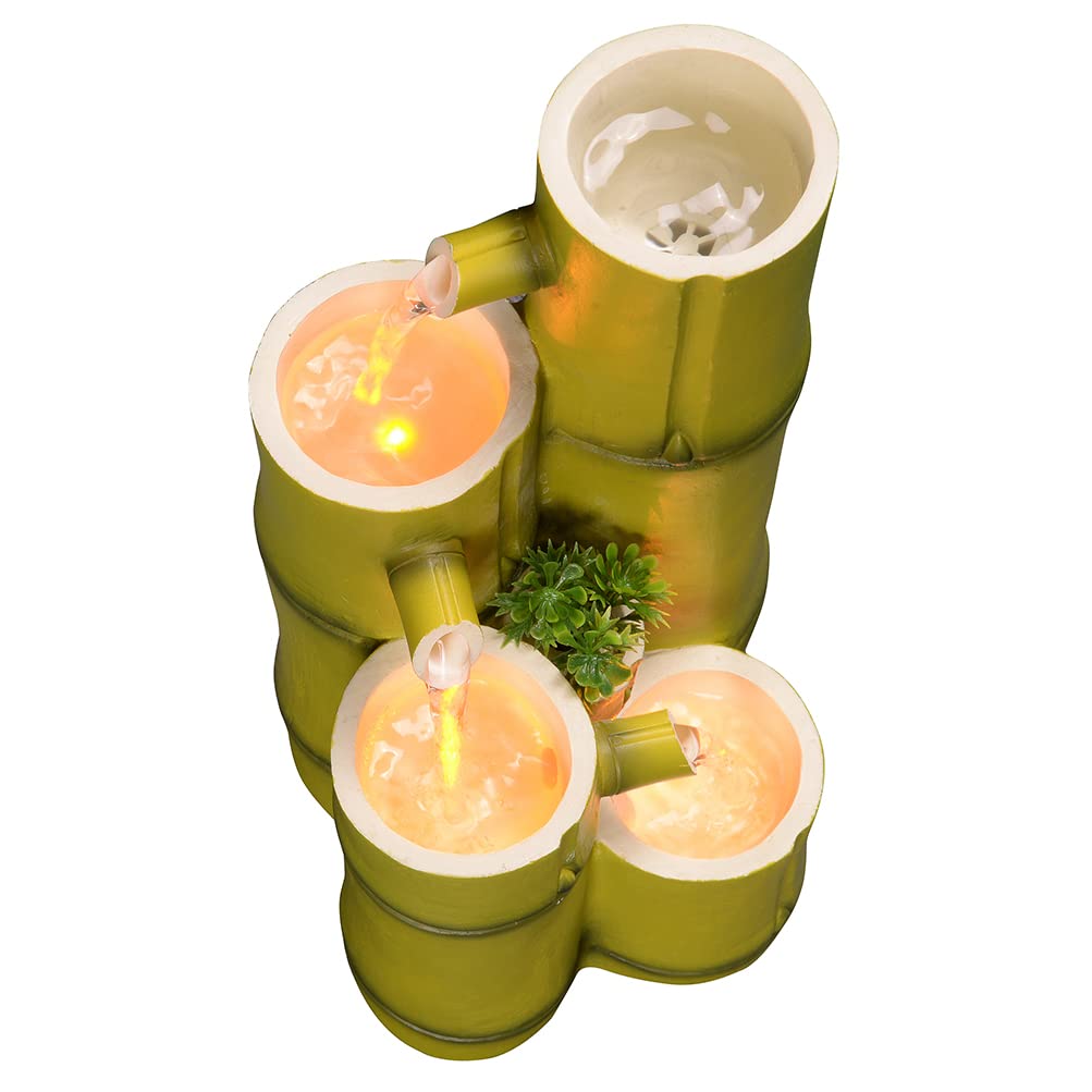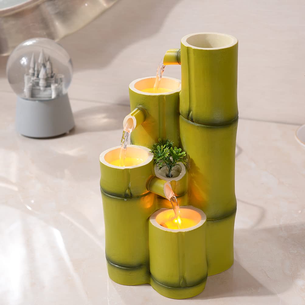 Details: GOSSI Tiered Bamboo Appearance Column Tabletop Fountain Relaxation Desktop Waterfall Fountain, 10.6 Inch Tall Simulation Natural Bamboo Cascading Fountain Decorate for Home/Office