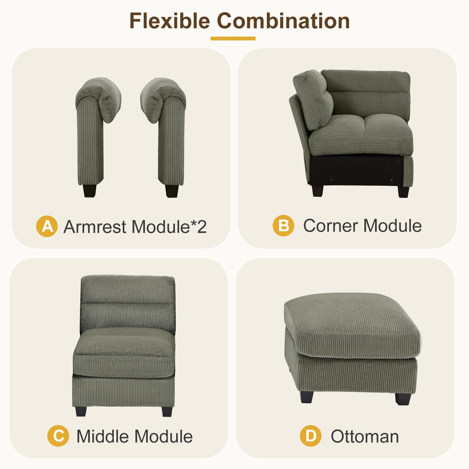 - Stylish Design: Featuring a clean, modern silhouette with rounded arms and elegant corduroy texture, this modular sectional couch complements a wide range of home décor styles. The neutral tone and sophisticated stitching details add a touch of warmth and charm to your living room, creating a cozy yet upscale look