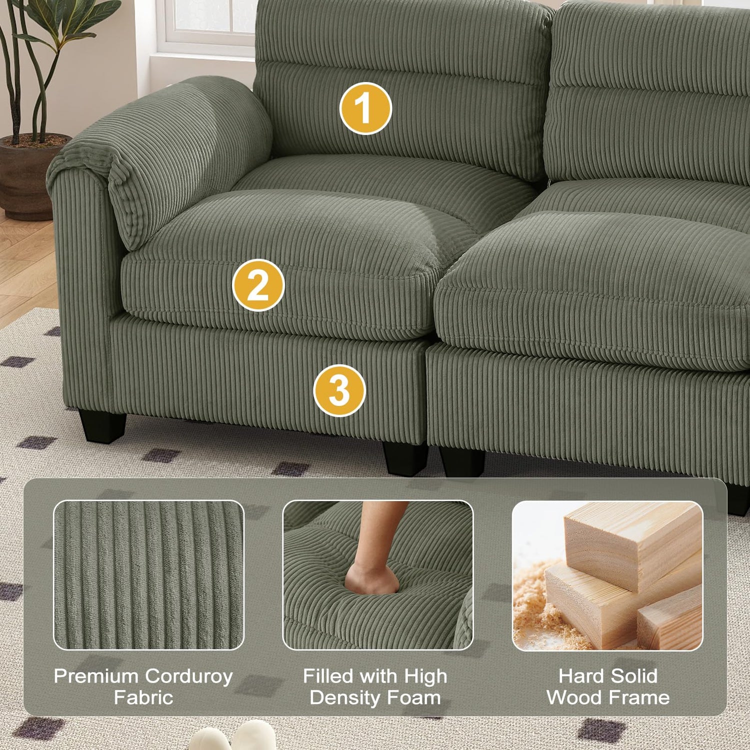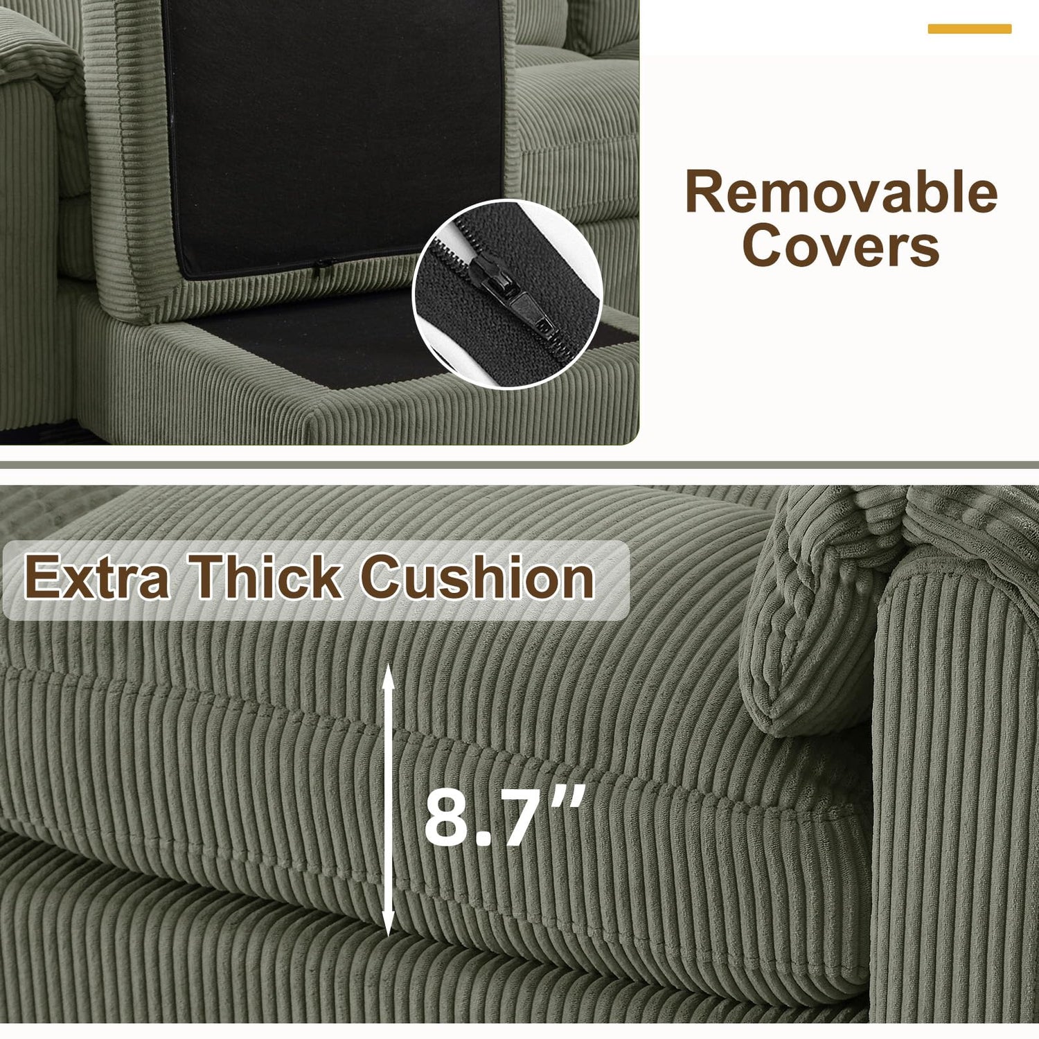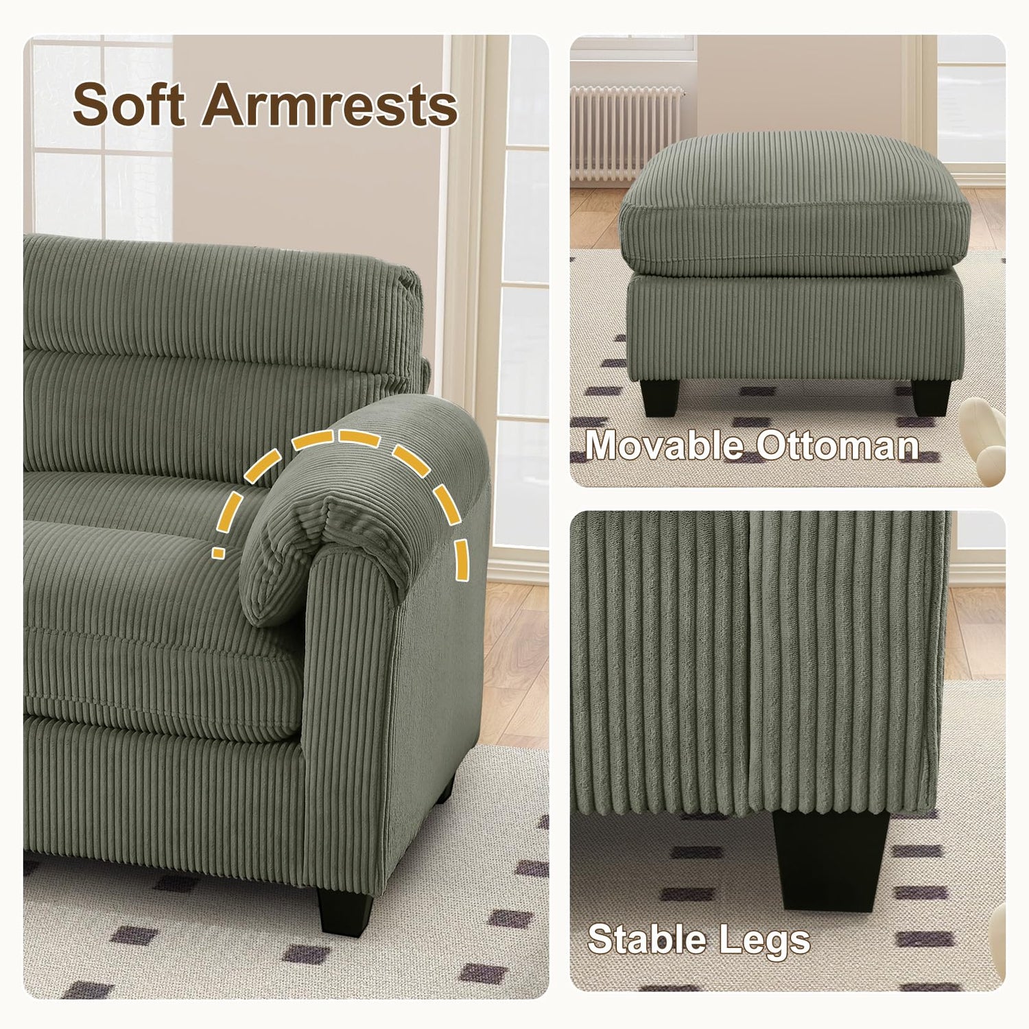 - Premium Materials: Wrapped in ultra-soft corduroy fabric, this sectional is both breathable and gentle on the skin. The cushions are filled with high-density foam that provides excellent support and long-lasting comfort, making it perfect for relaxing, lounging, or everyday use without losing its shape over time