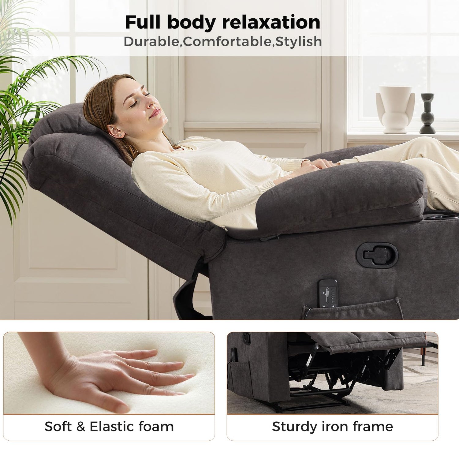 HAOMARKETS Classic Manual Recliner with Massage and Heat for Adults, Soft Fabric Recliners with Two Cup Holders, Overstuffed Heavy Duty Reclining Chair for Living Room, Grey